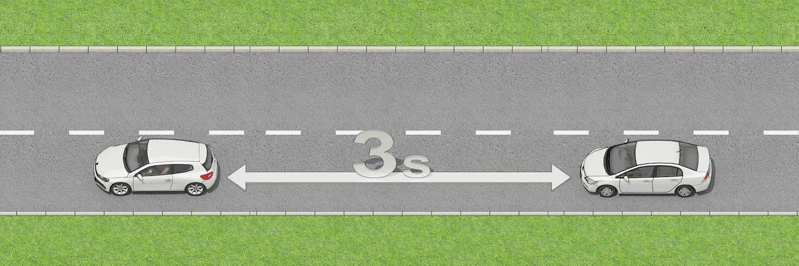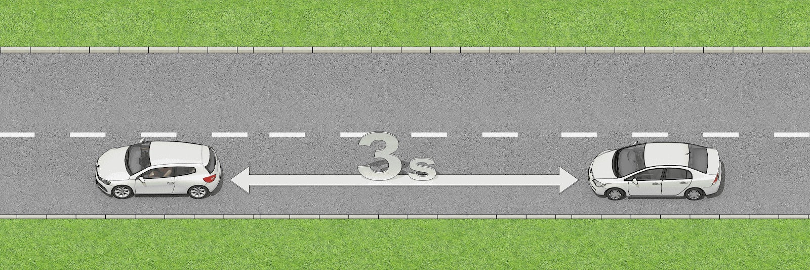 - Note when the vehicle in front of you passes an object (e.g. road sign, building etc.) and count the seconds until you pass the same object.
