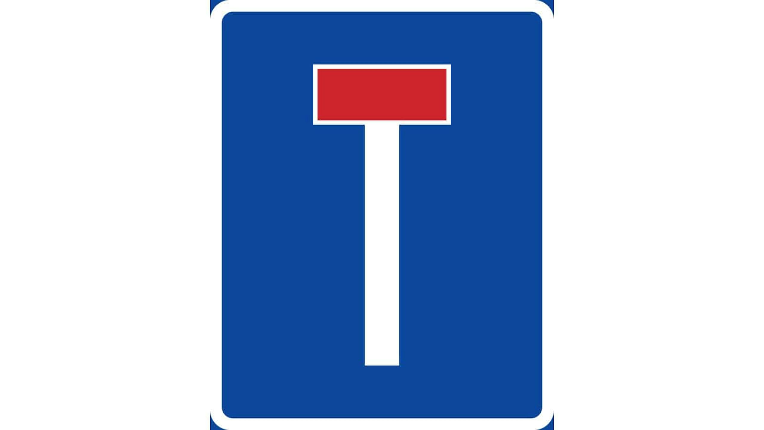 Återvändsgränd. Denna skylt informerar om att du närmar dig en återvändsgränd.