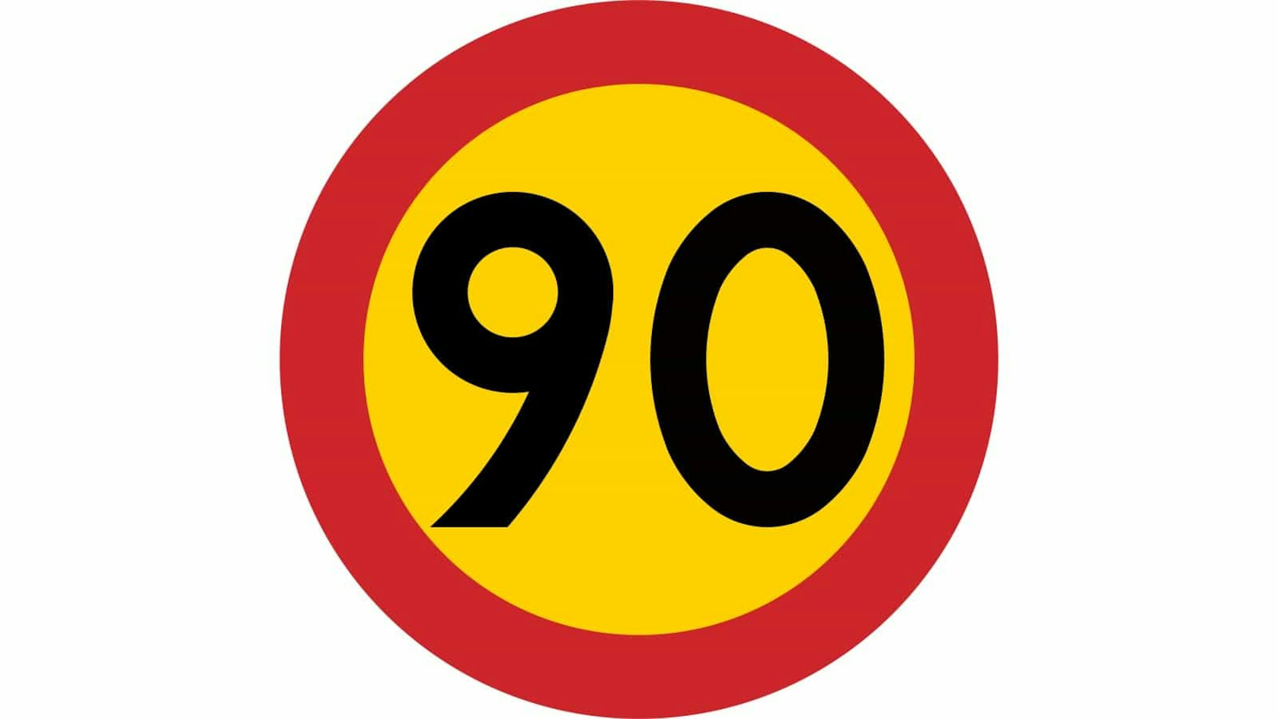 Maxhastighet. Du får inte köra fortare än vad som står på skylten. I detta fall är maxhastigheten 90 km/h.