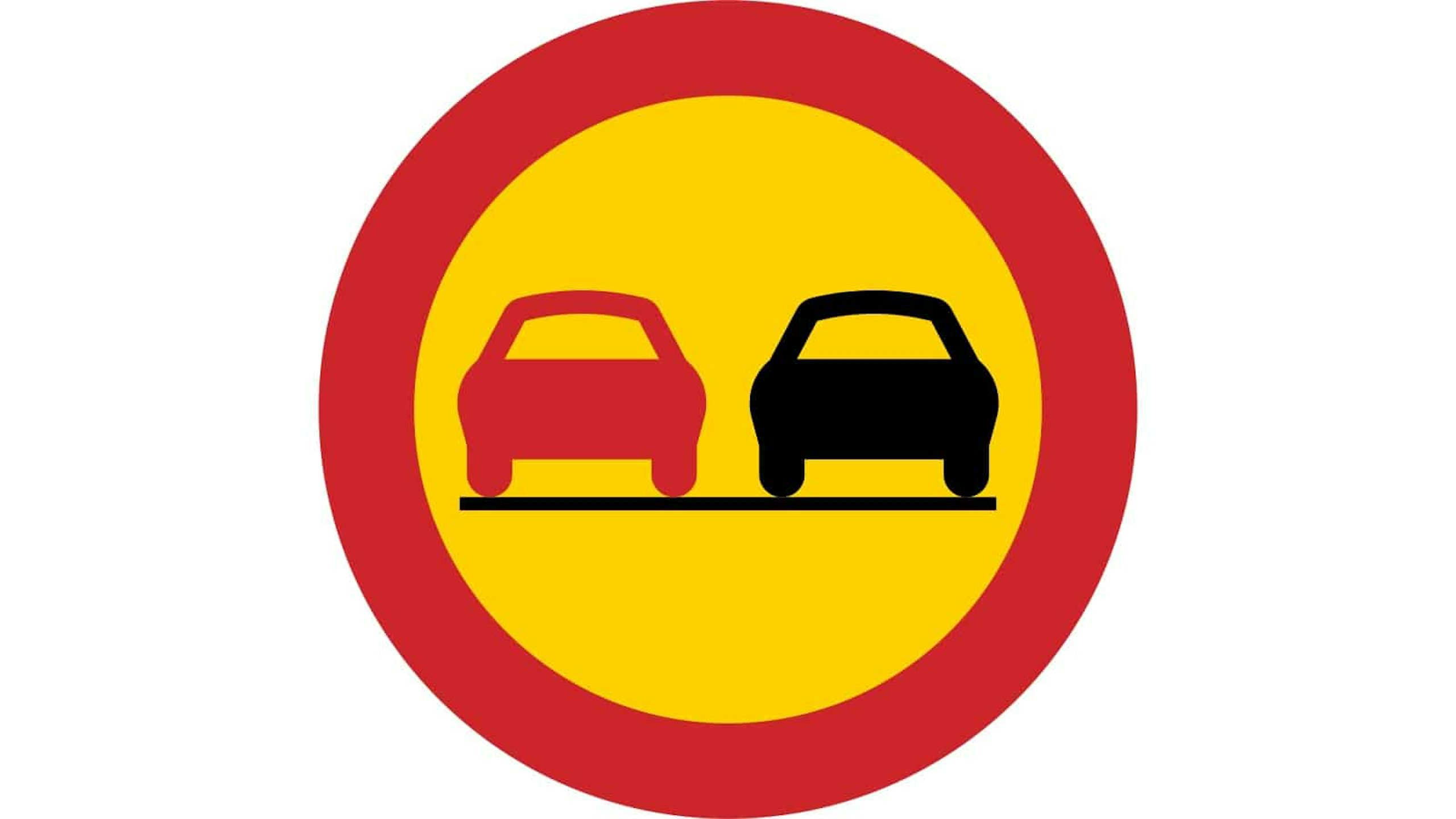 Omkörningsförbud. Kör aldrig om när du ser den här skylten!