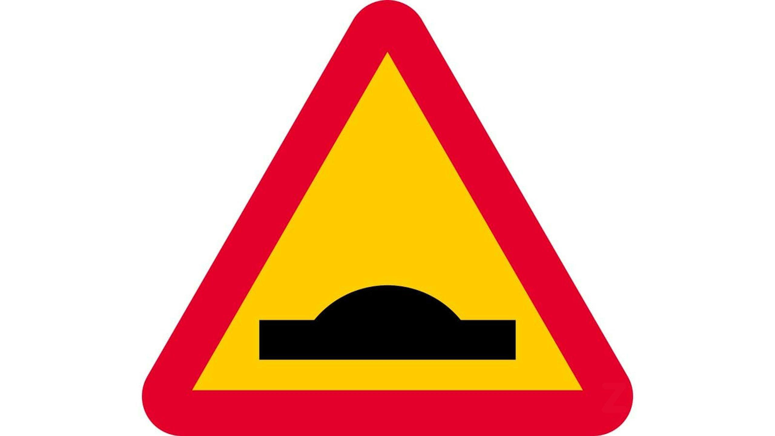 Varning för farthinder. Denna skylt varnar för att du närmar dig ett eller flera farthinder. Sänk hastigheten och var uppmärksam. Det finns ofta en särskild anledning att det förekommer farthinder, ex. lekande barn eller skola.