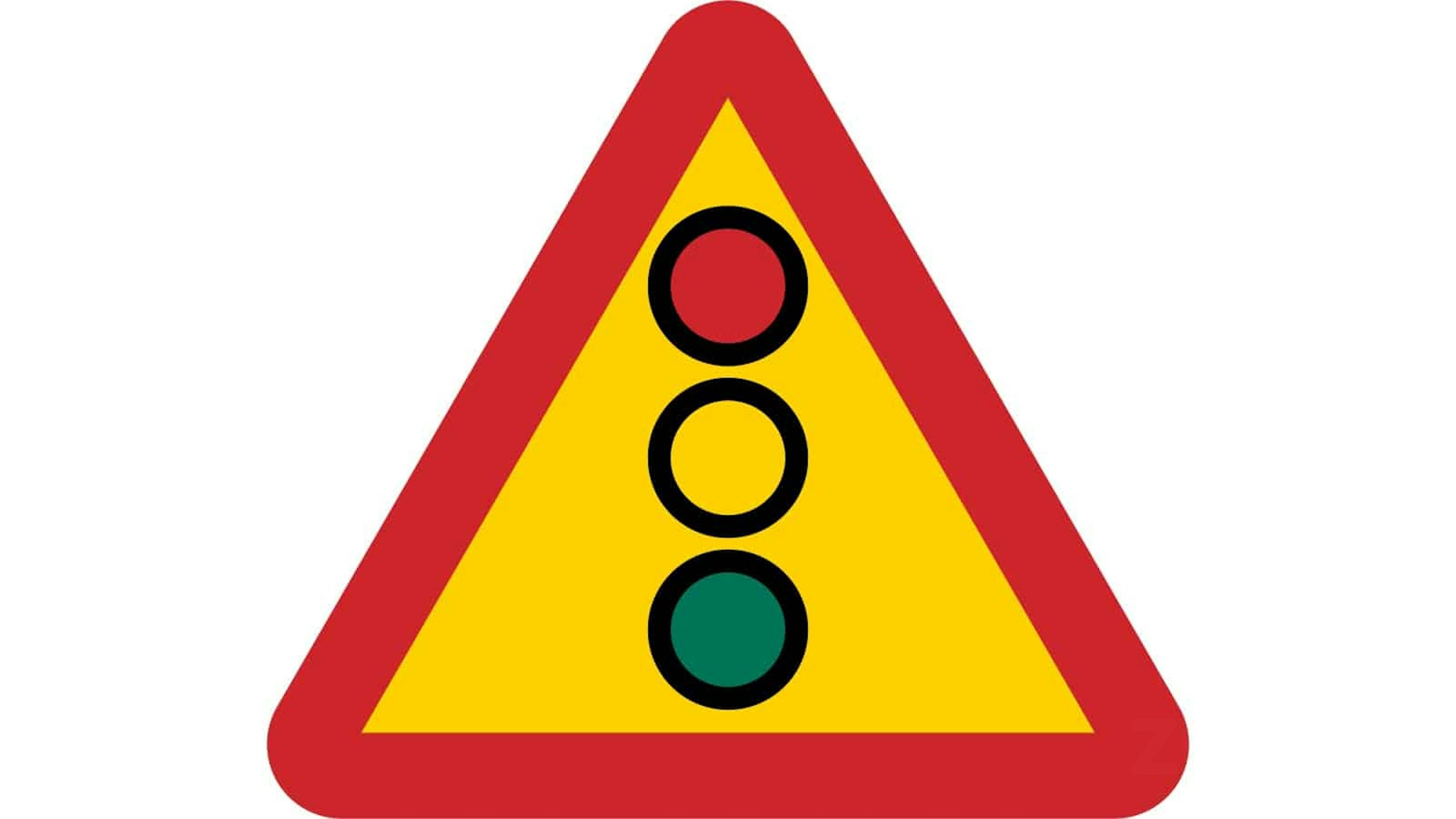 Varning för flerfärgssignal. Trafikskylten varnar för ett trafikljus (flerfärgssignal). Skylten är inte uppsatt framför alla trafikljus utan endast om det finns särskilda skäl för det.