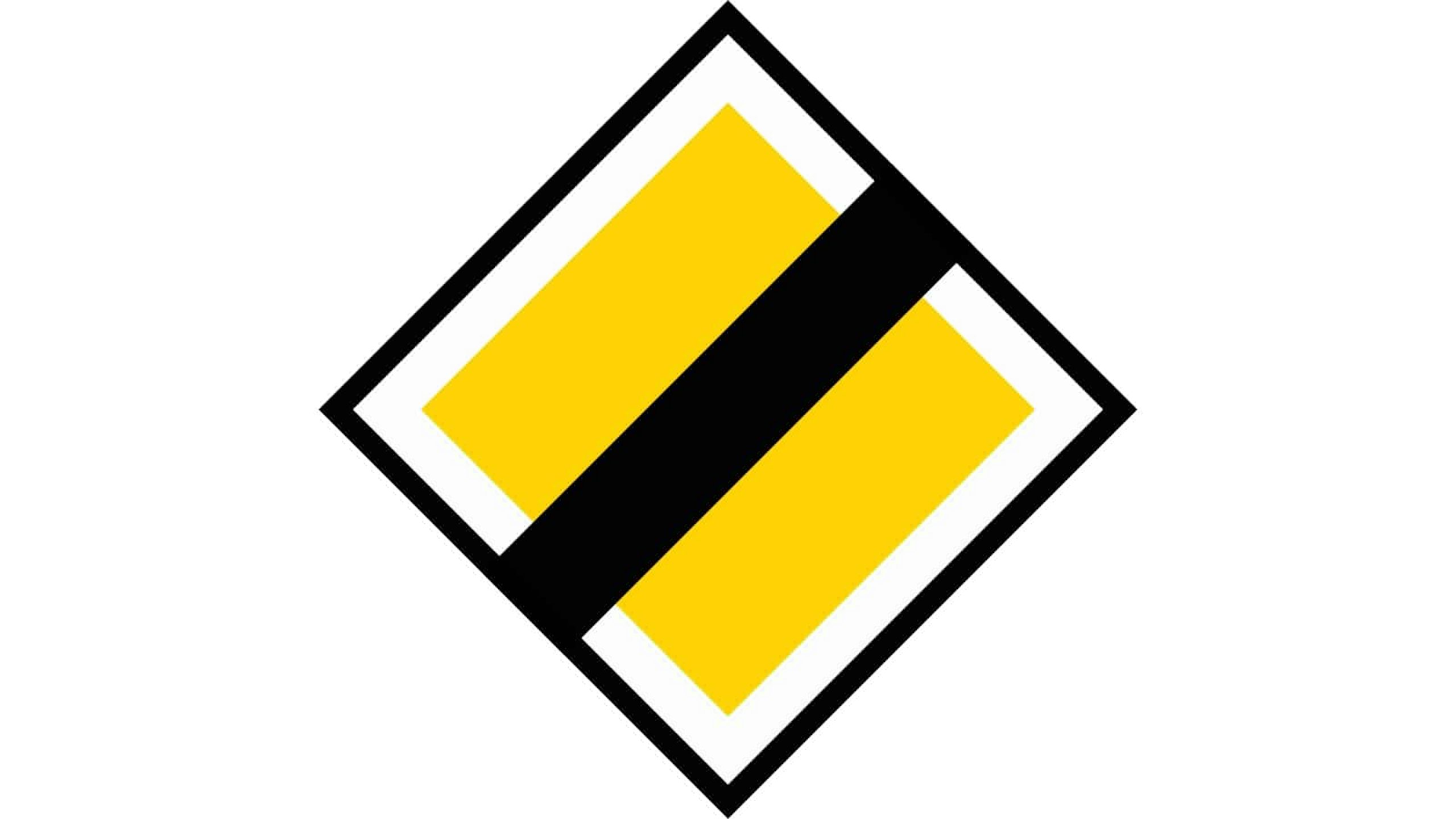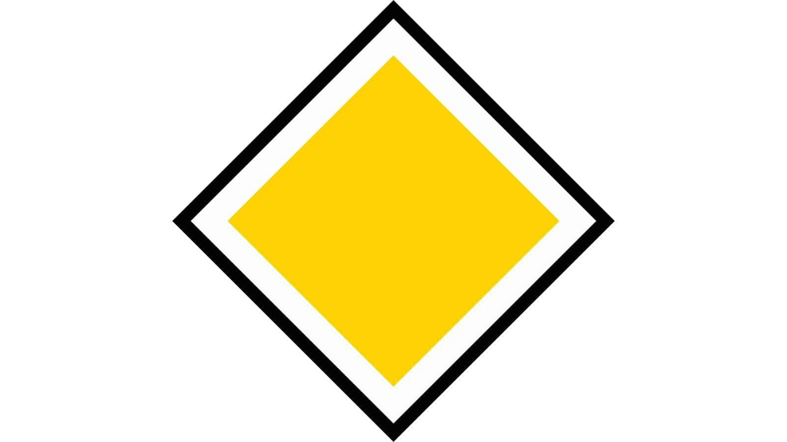 Huvudled. Detta är en huvudledsskylt. Om du kör på en huvudled har du företräde och behöver inte väja åt bilar som vill köra in på huvudleden.
