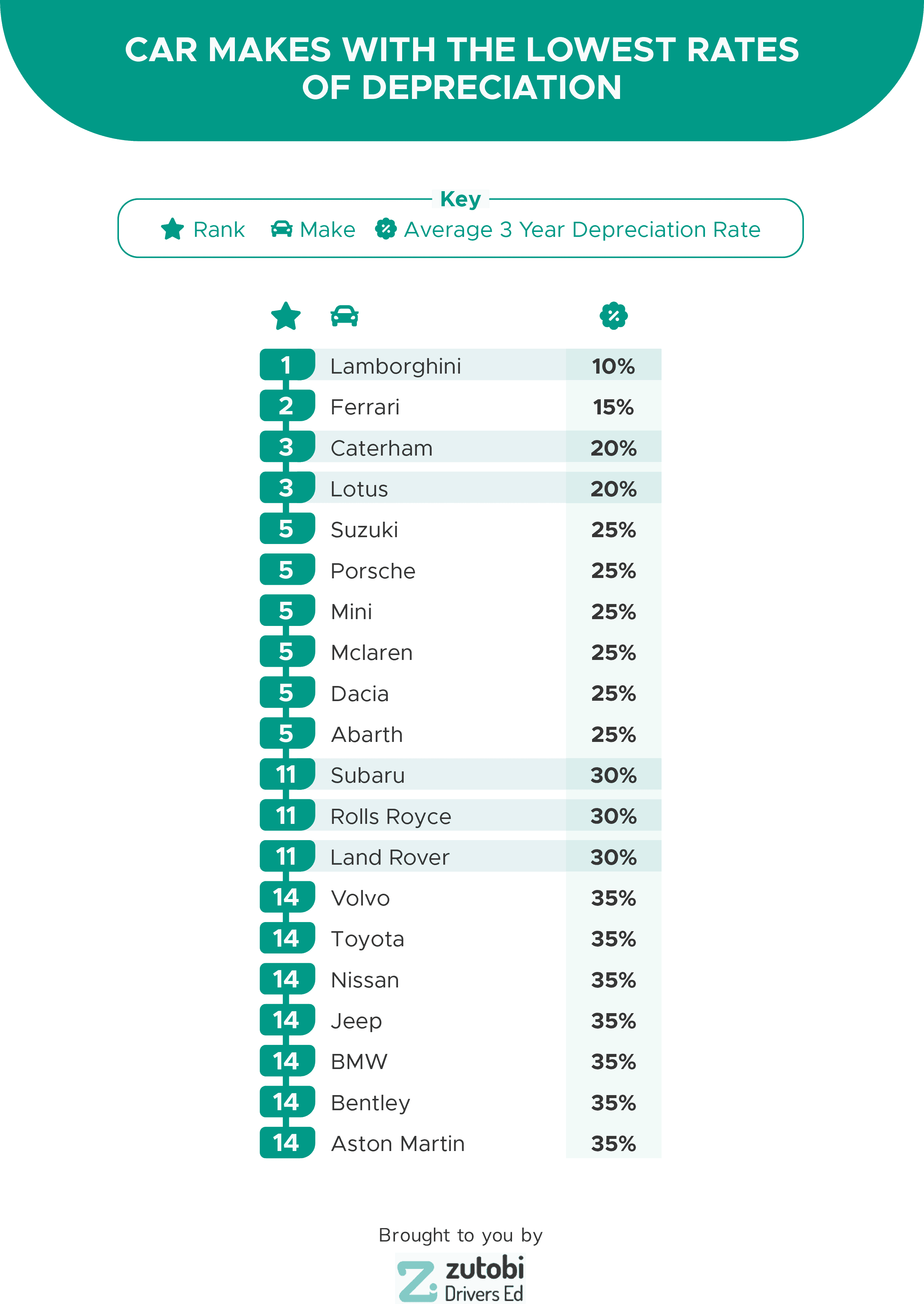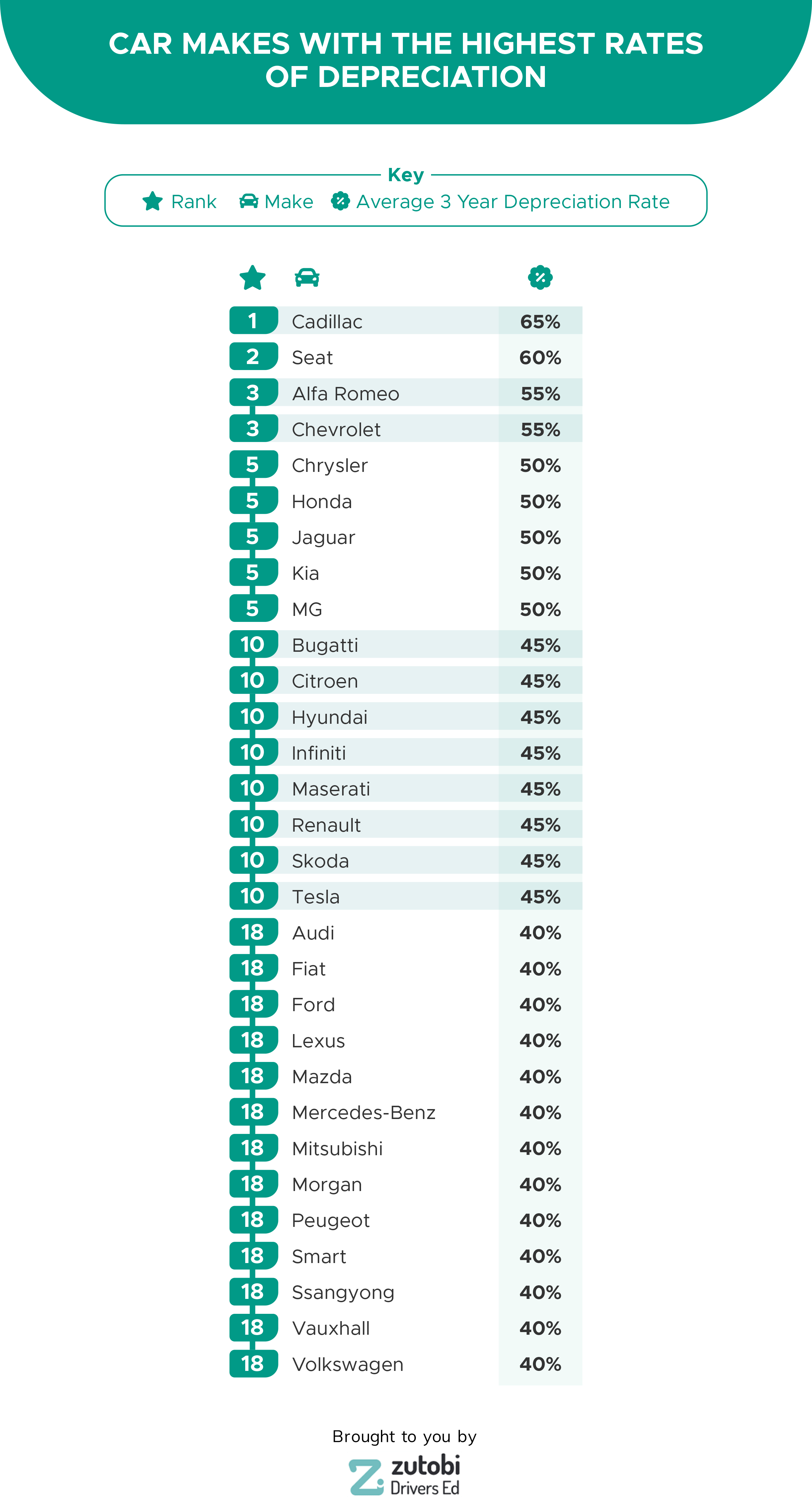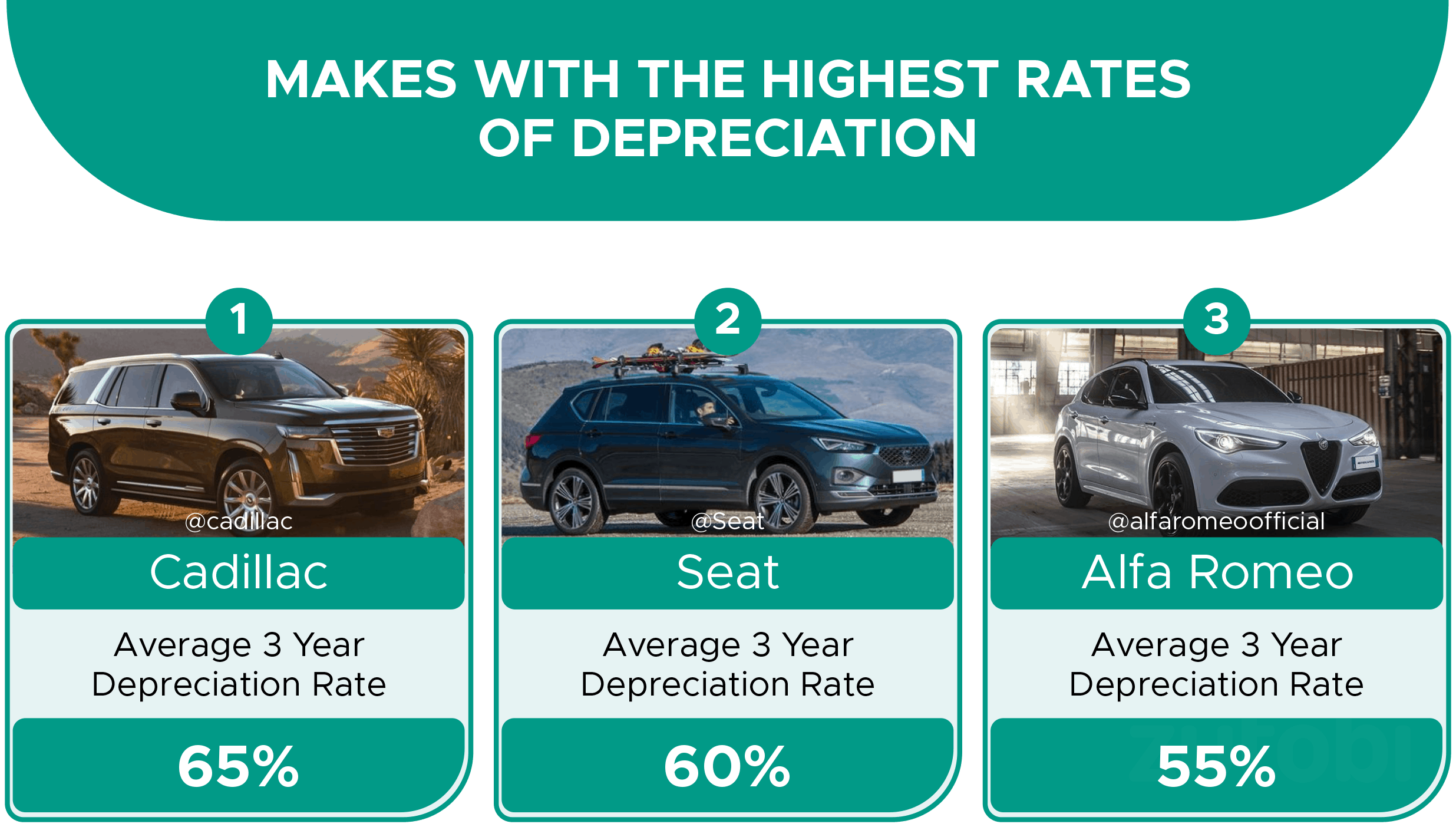 - For the car brands we took the overall average depreciation of the brand over three years from the home page of the car depreciation calculator