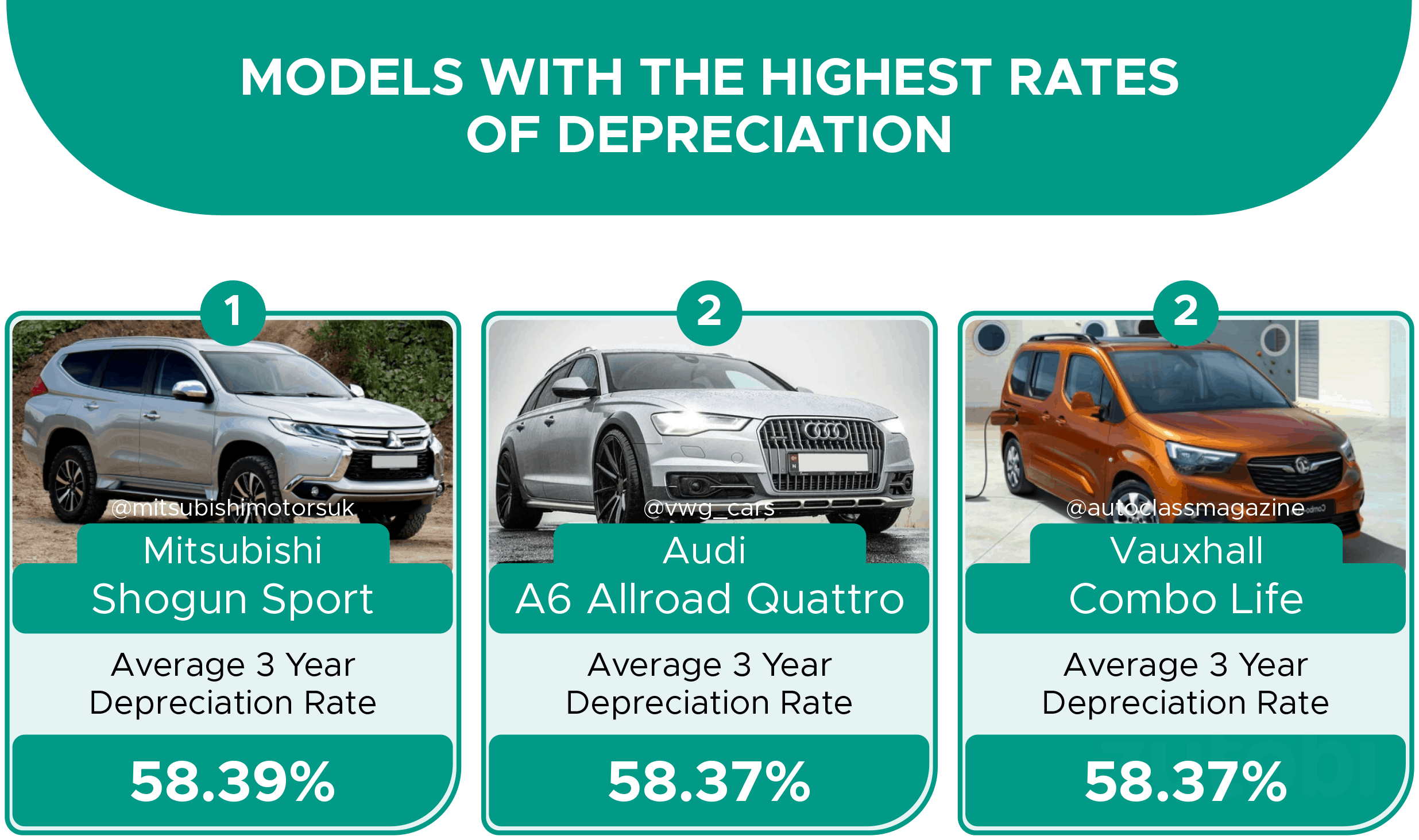 1 – Mitsubishi Shogun Sport, average 3 year depreciation rate of 58.39%