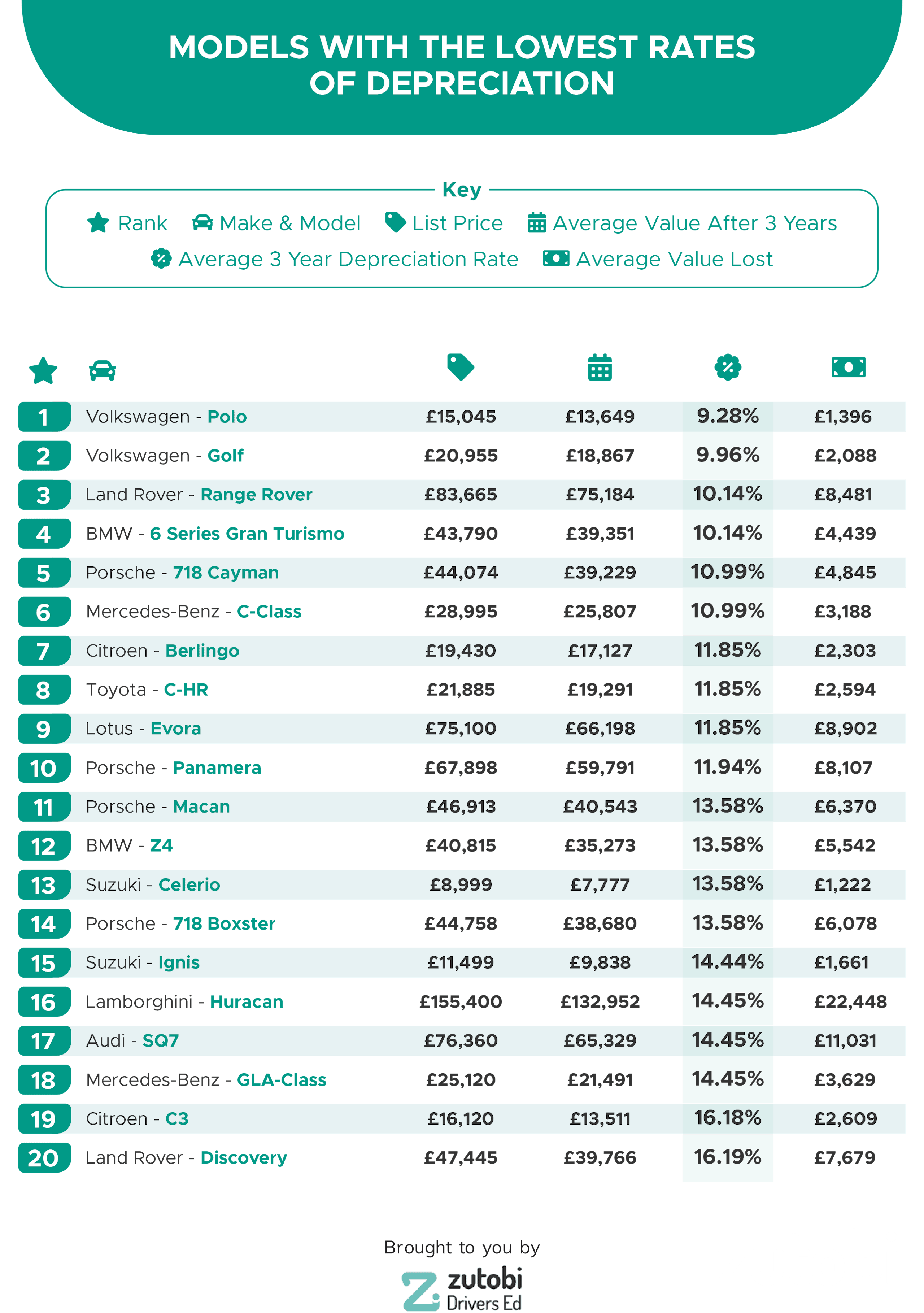 Therefore, using data we are able to reveal which car makes and models in the country have the lowest average rates of depreciation over a three-year period. On the flip side, we have also determined the makes and models with the highest average depreciation, showing where you can find a bargain on the second-hand market.