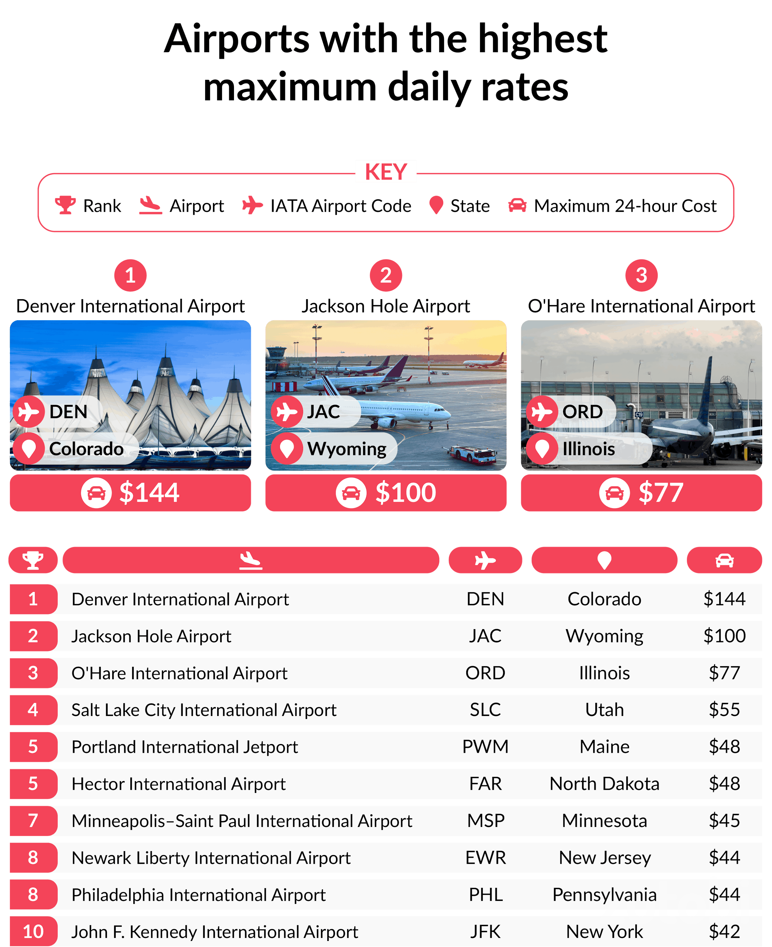 Denver International Airport (DEN), Colorado – $144 maximum daily rate