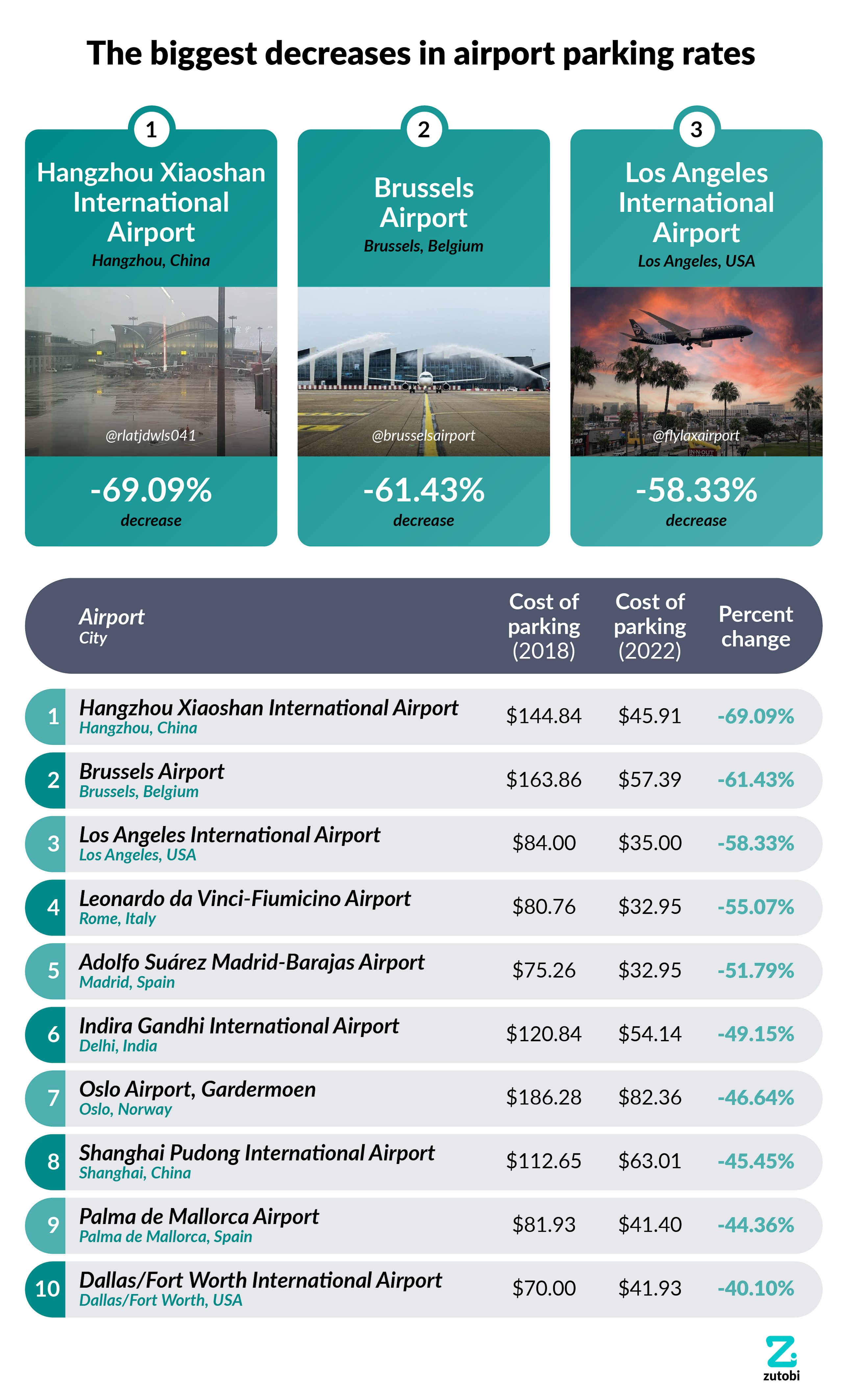 The biggest decreases in airport parking rates