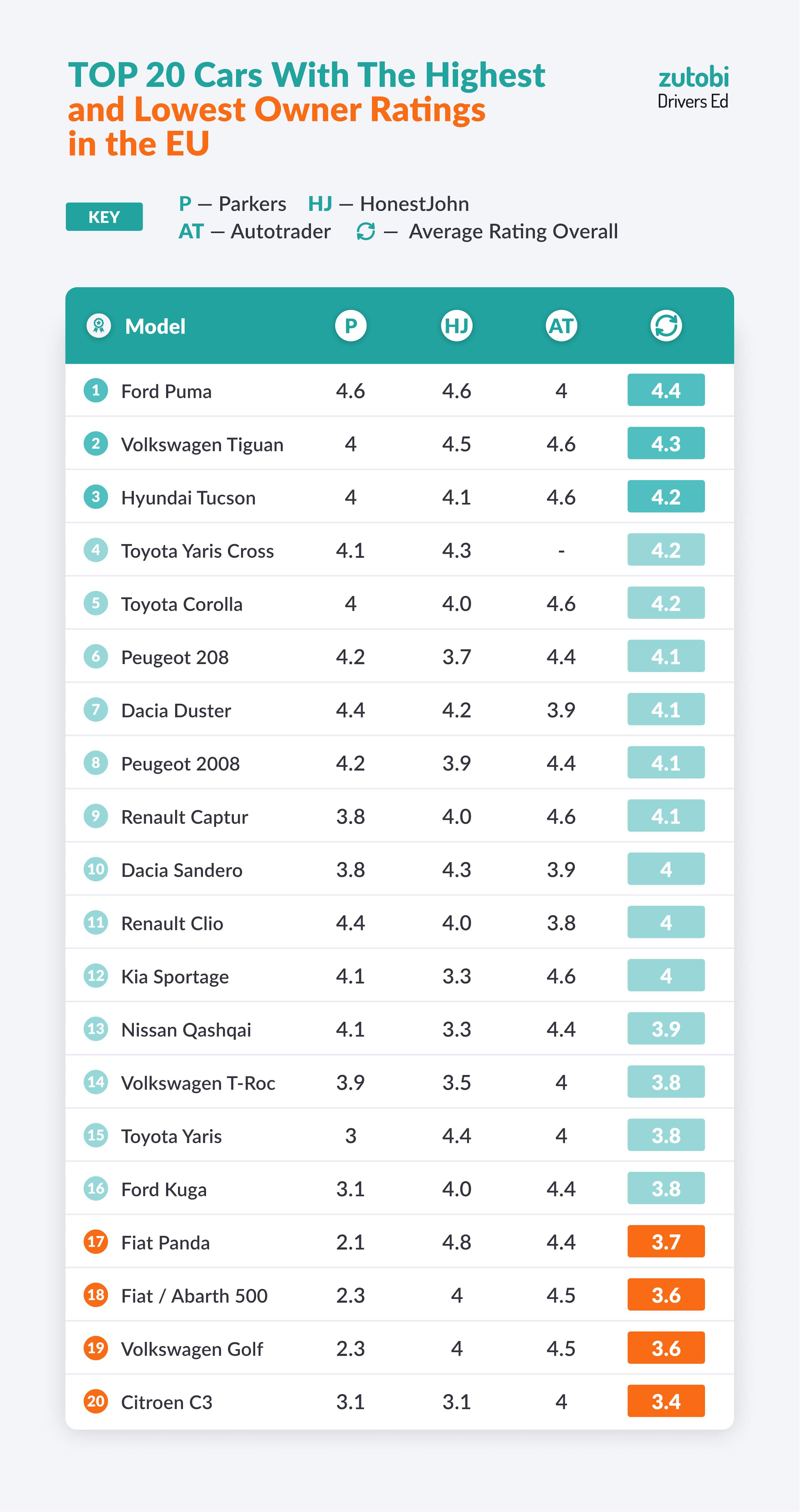 TOP 20 Cars with the Highest and Lowest Owner Ratings in the EU