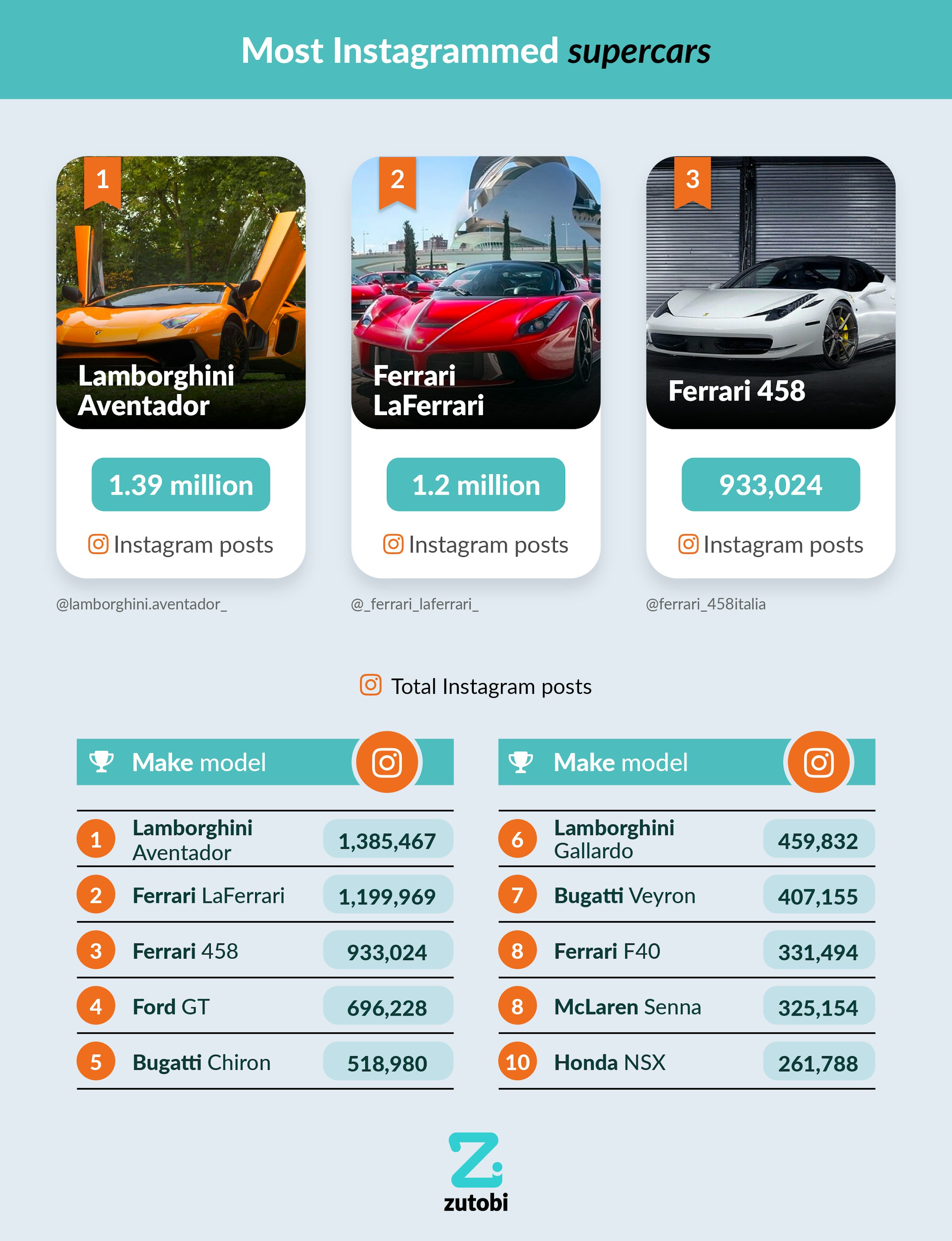 2 – Ferrari LaFerrari. 1.2 million Instagram posts: