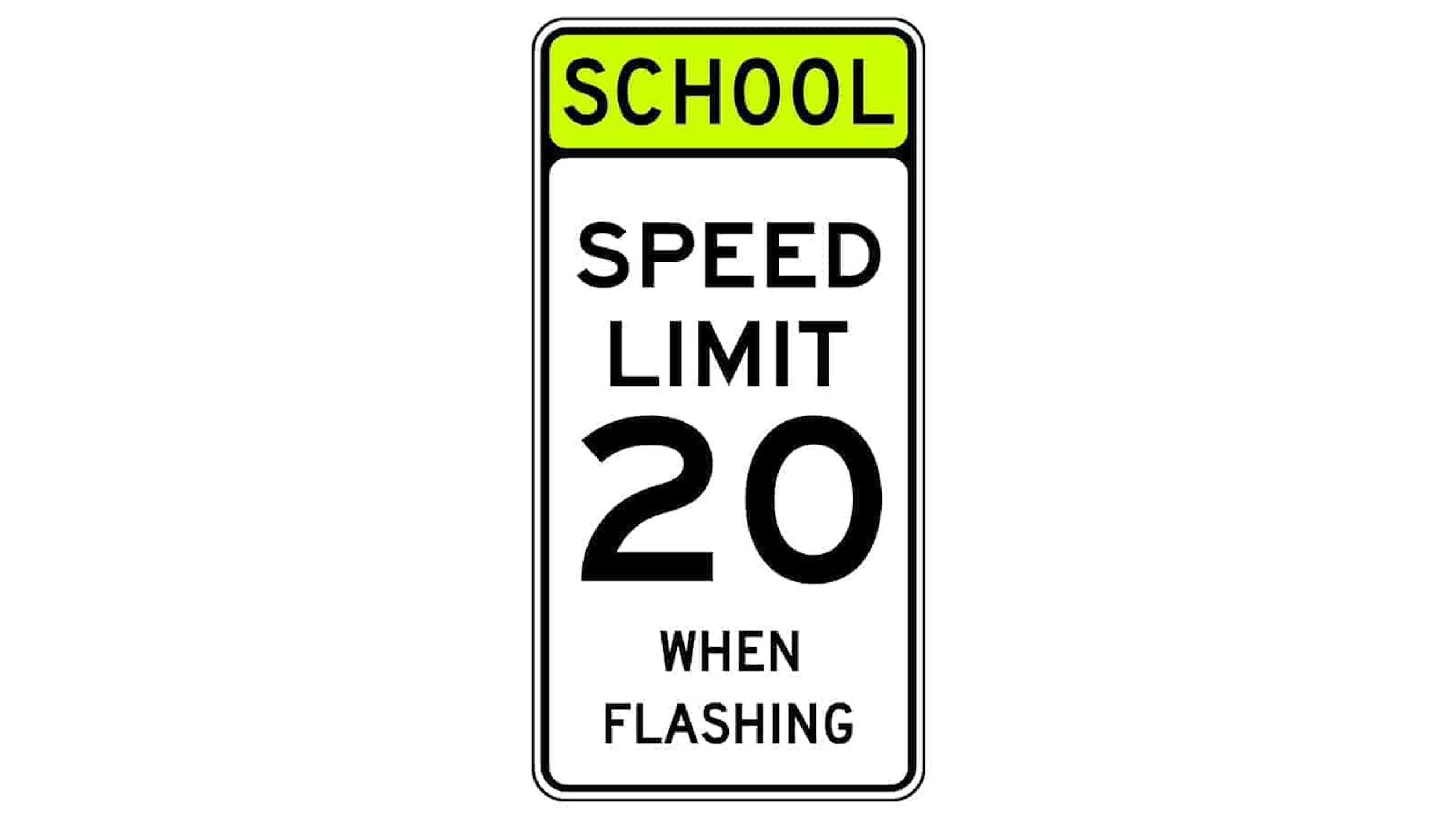 School Speed Limit When Flashing Sign. This speed limit applies near schools when the lights are flashing.