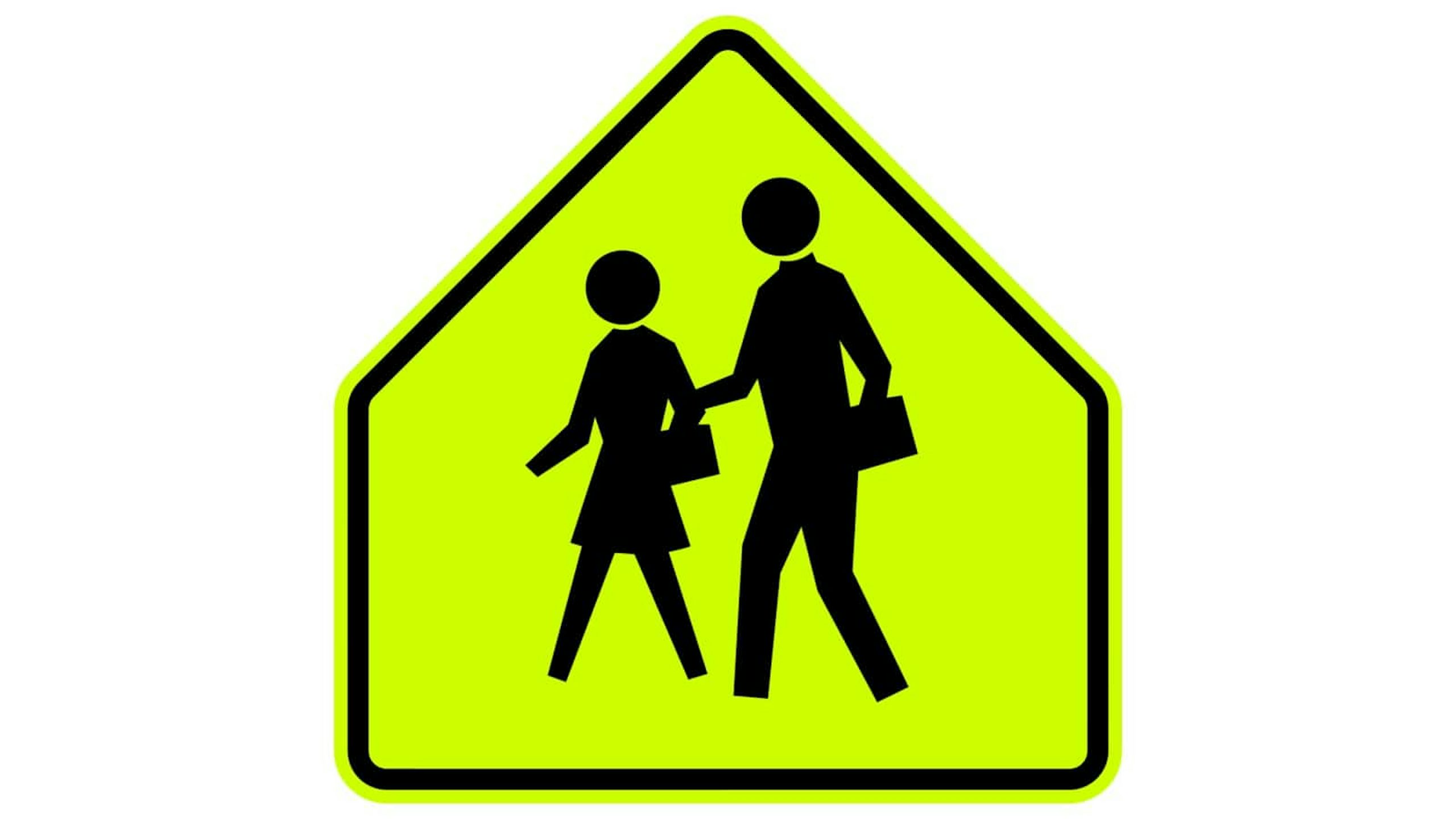 School Sign. This sign warns of a school or pedestrian crosswalk near a school ahead. Be alert and ready to stop.