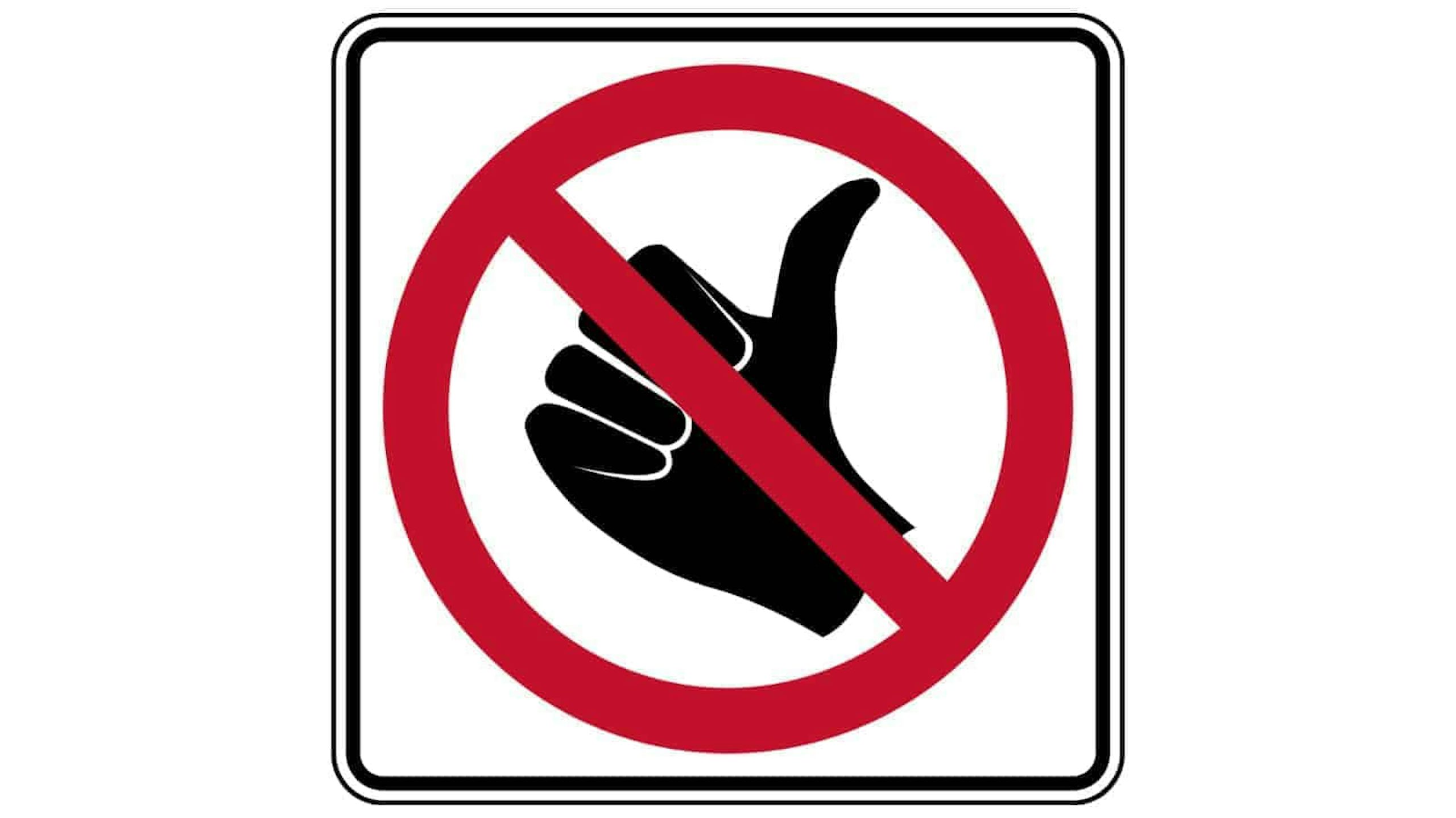 No Hitchhiking Sign. Hitchhiking is prohibited past this sign, and drivers shouldn’t stop to pick up hitchhikers.