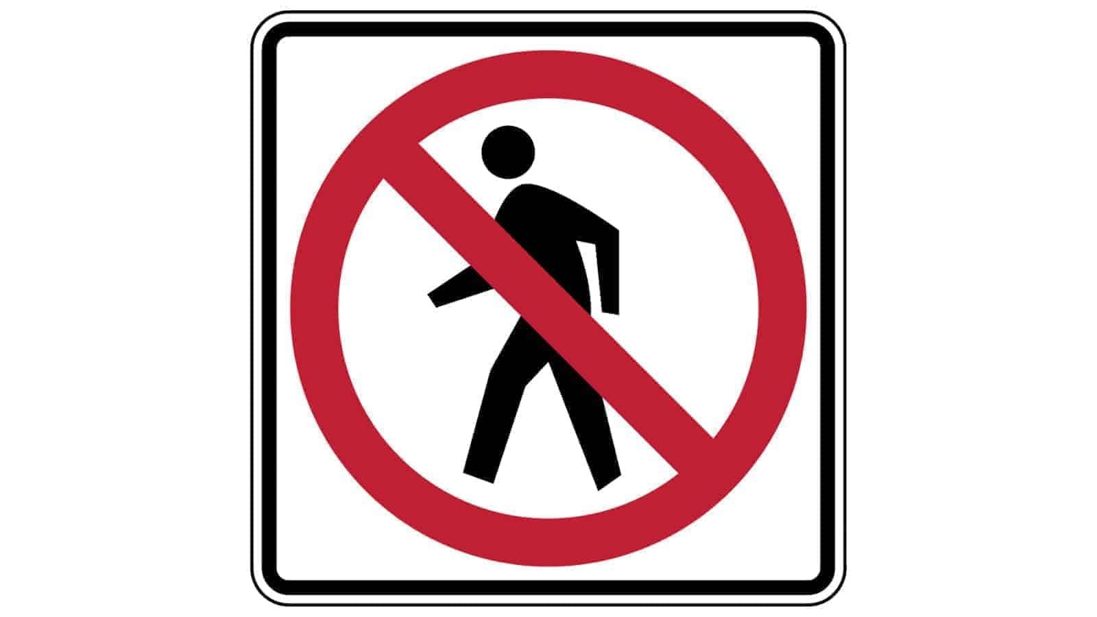 No Pedestrian Crossing Sign. This sign indicates that pedestrians are not to cross at the sign.