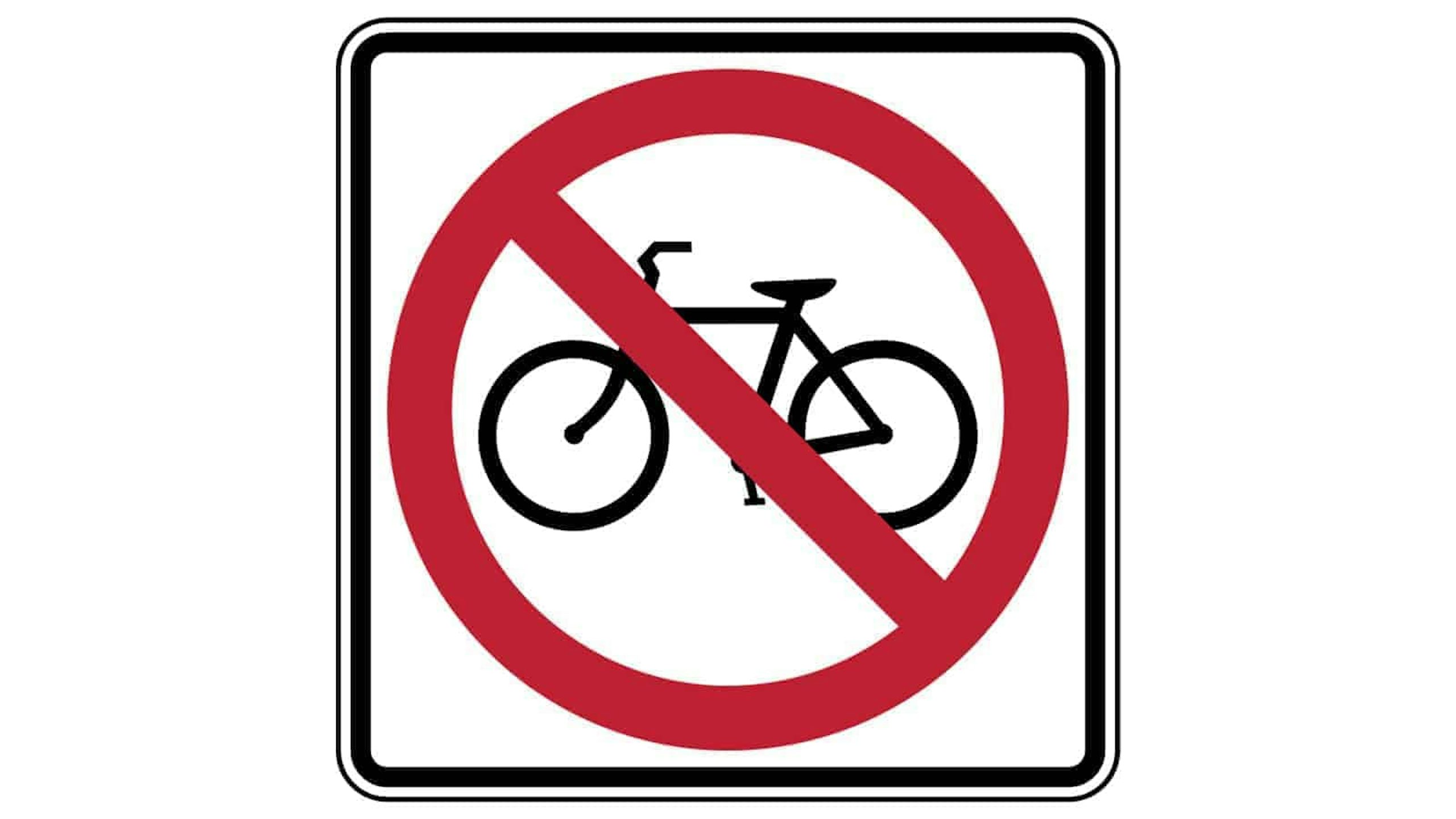 No Bicycles Sign. This regulatory sign indicates that bicycles are not allowed on the road.