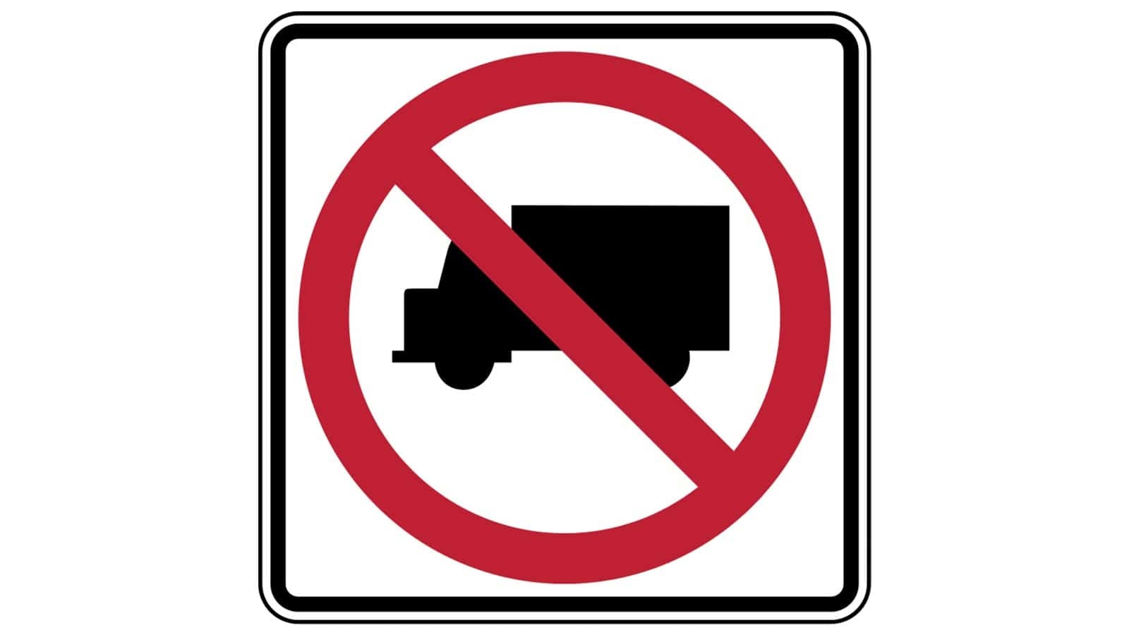 No Large Trucks Sign. This sign indicates that trucks are not allowed on the road.
