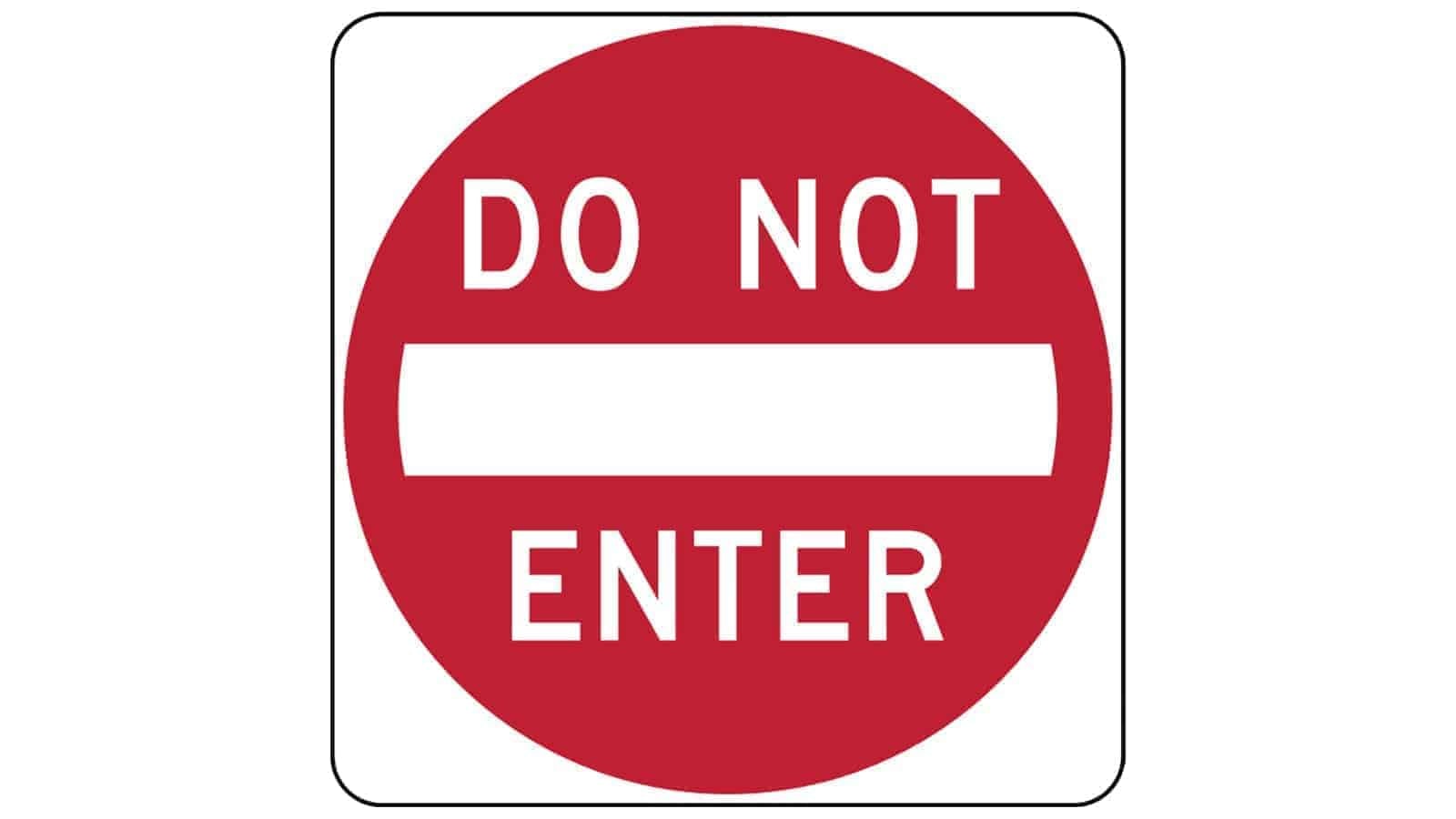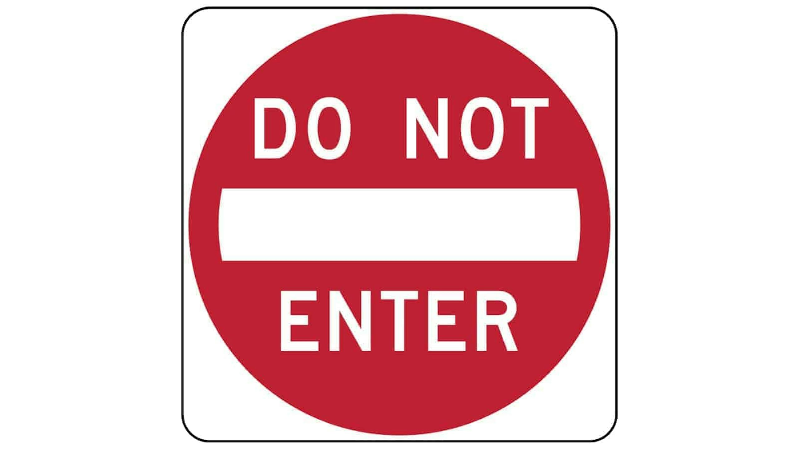 Do Not Enter Sign. This sign indicates that you mustn’t enter the road at which this sign is posted. Traffic may, for example, travel in the opposite direction beyond this point.