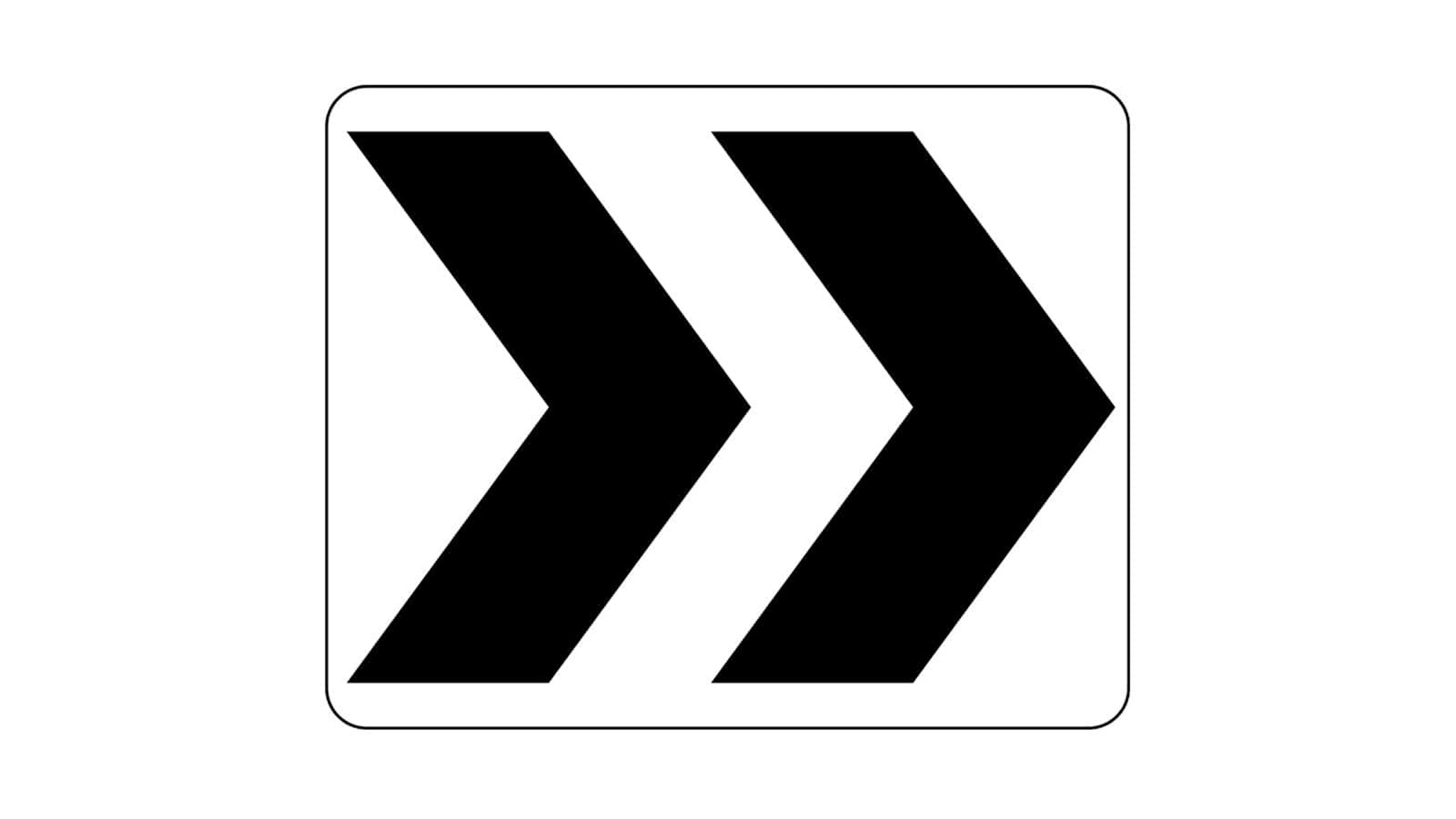 Chevron Roundabout Directional Sign. These ‘chevrons’ are used to indicate the direction that traffic must travel in a roundabout.