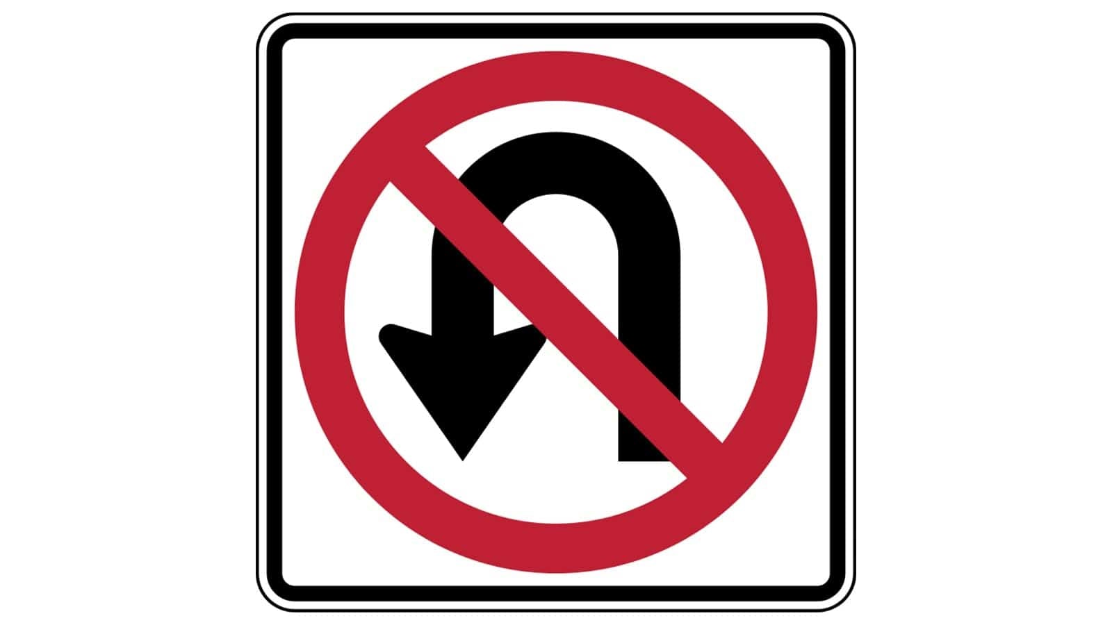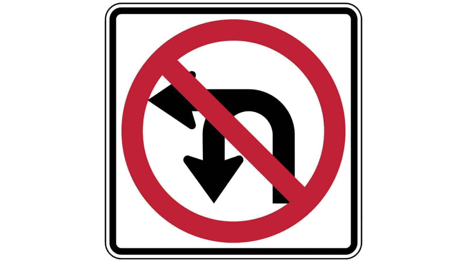 No Left or U-turn Sign. This regulatory sign indicates that you are prohibited from making a left/right turn here.