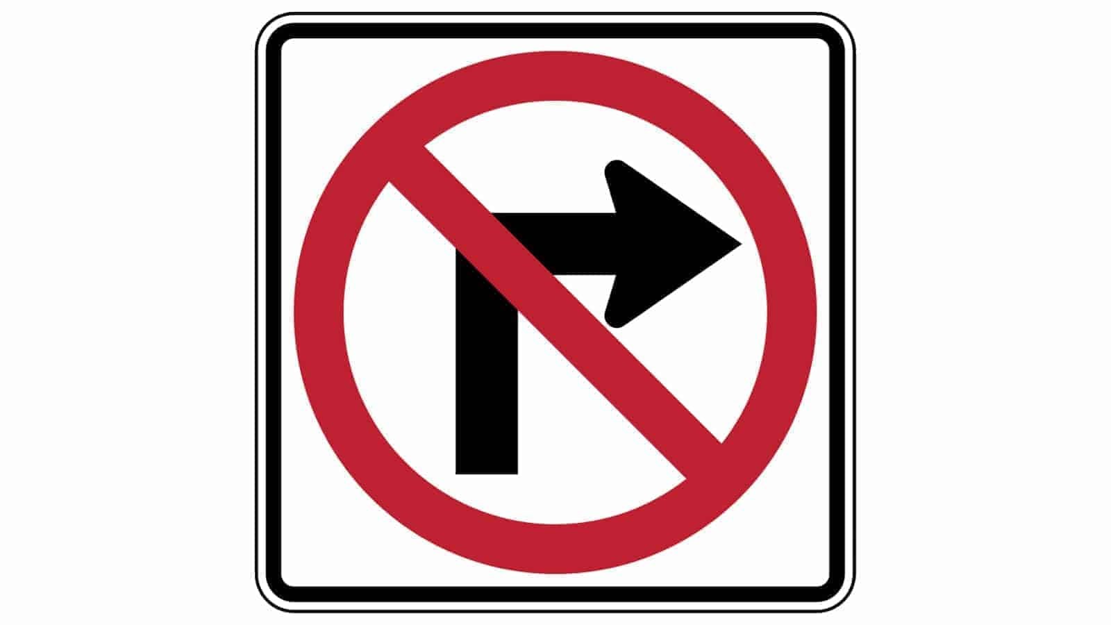 No Right/Left Turn Sign. This sign indicates that you are prohibited from making a left/right turn here.