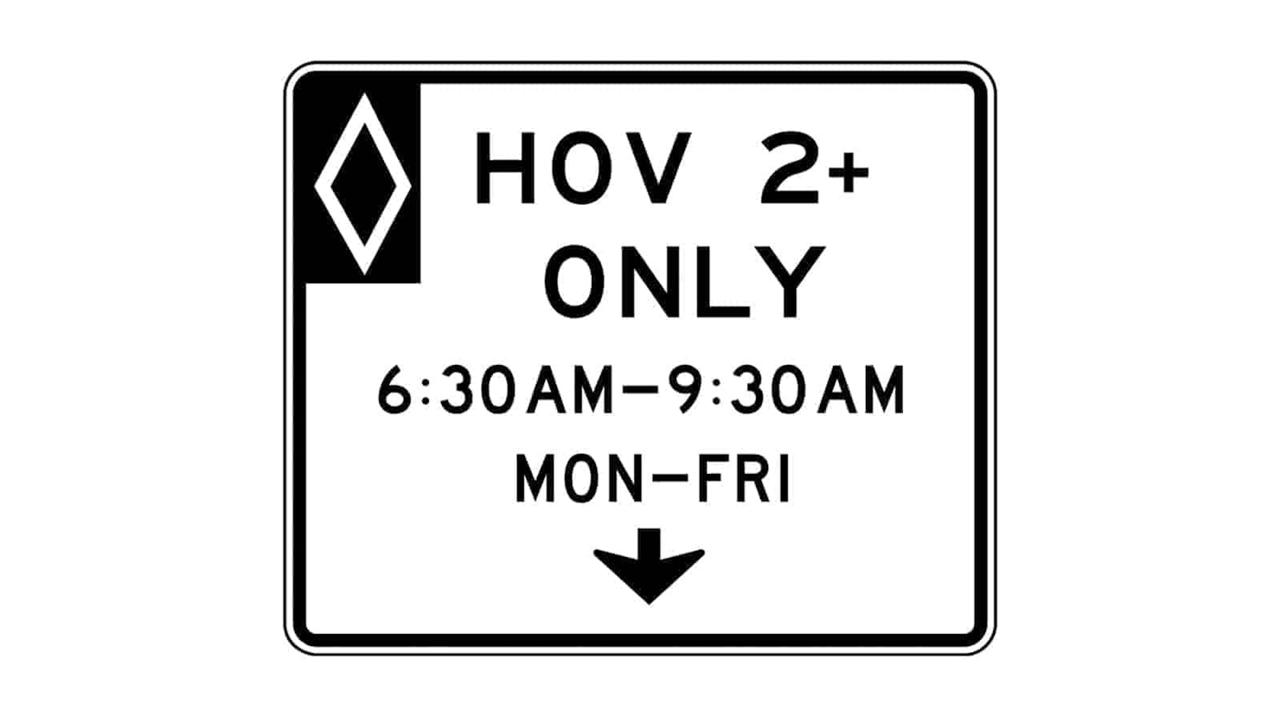 HOV 2+ Only Sign. This sign indicates that the HOV 2+ limit applies during the specified times.