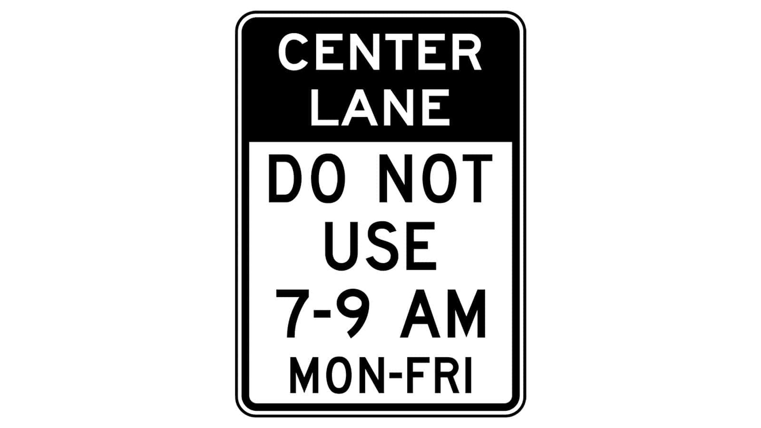 Center Lane Control Sign. This regulatory sign prohibits the use of the center lane between the specified times.
