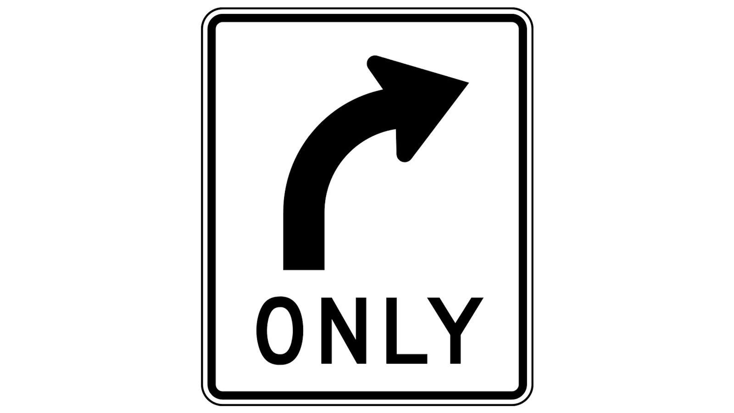 Right Turn Only Sign. This sign indicates that all vehicles in this lane must only turn right.