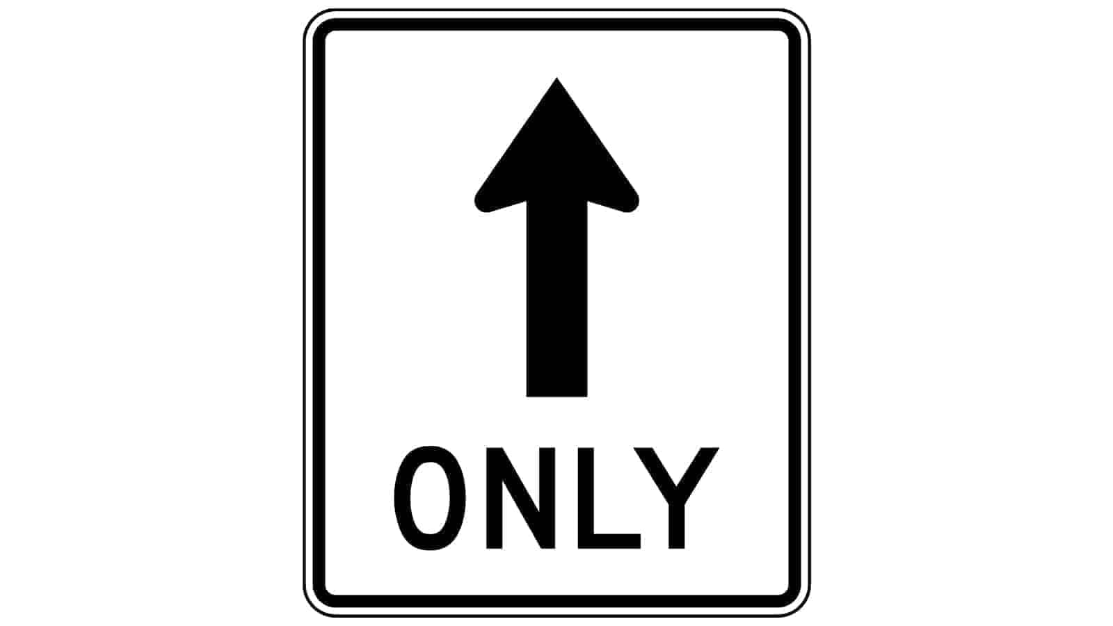 One Way Sign. This sign indicates that there is one-way traffic in the direction of the arrow. Traffic must move in the direction of the arrow.