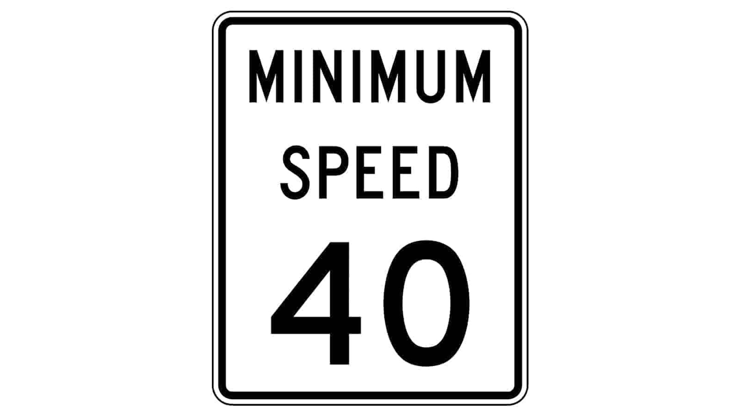 Minimum Speed Limit Sign. This regulatory sign is intended to keep traffic flowing smoothly, and indicates a minimum speed limit of 40 mph. Do not drive slower than indicated!