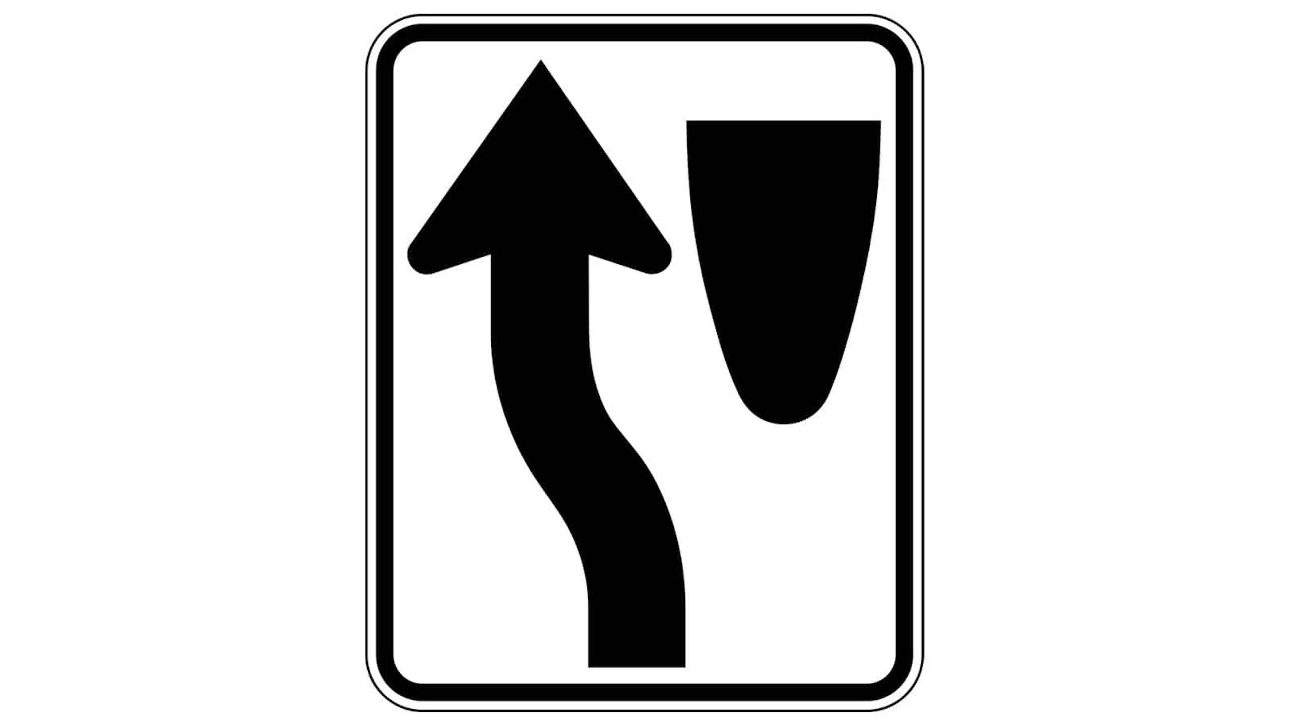 Option Sign for Left or Straight Turn Sign. Traffic driving in a lane with this sign must turn left or go straight ahead. There are similar signs for turning left, right, and for making a U-turn. .