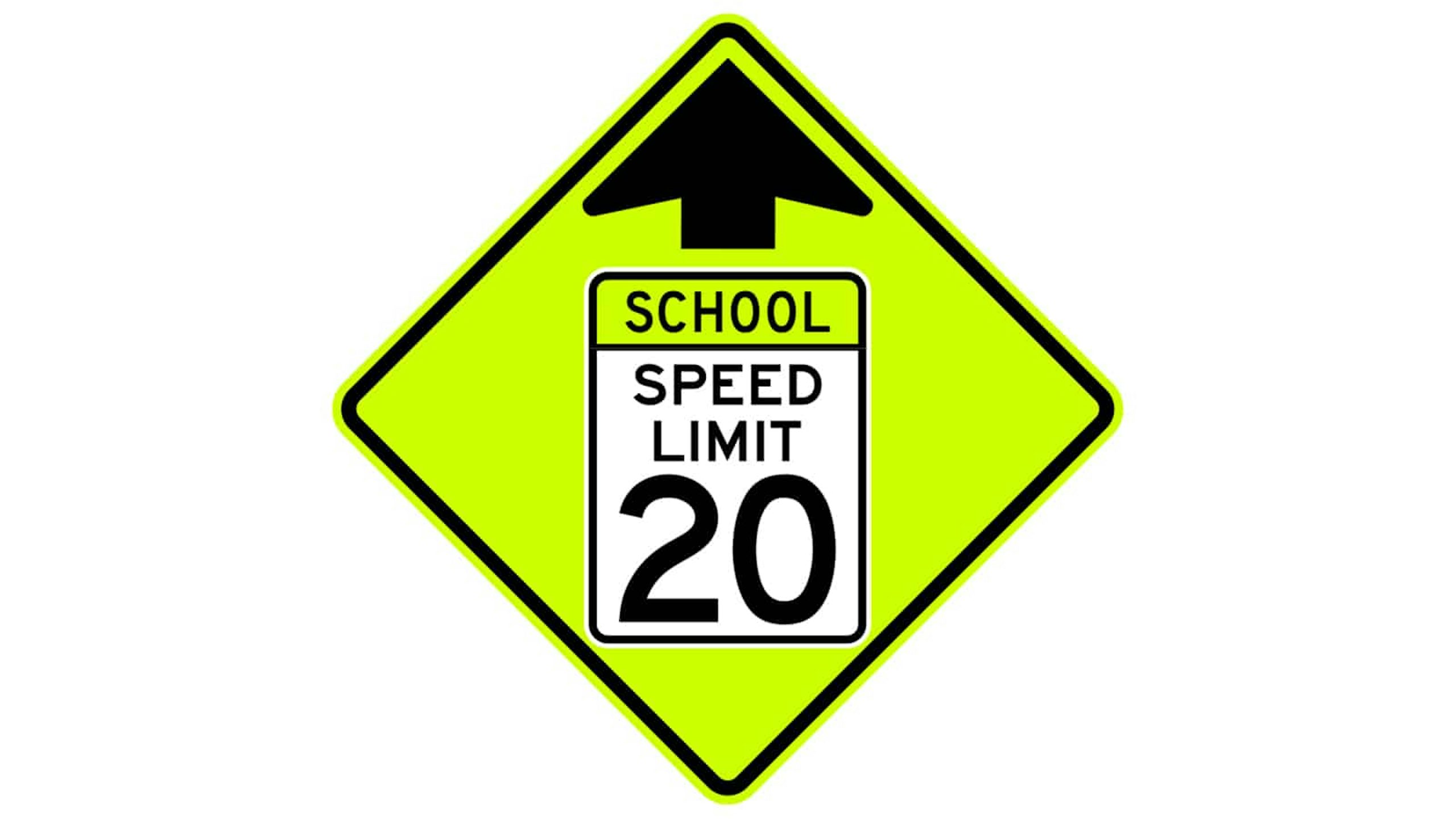 School Speed Limit Ahead Sign. This sign warns you of a school speed limit sign ahead. Prepare to lower your speed to the indicated speed.