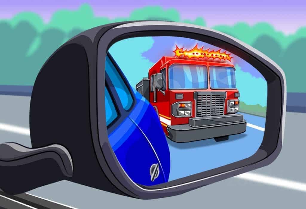 Like school buses, you must take action when you see an active emergency vehicle with flashing lights and running sirens. As seen on many state DMV practice tests, you must pull your vehicle over the side when you spot an emergency vehicle coming in your direction.