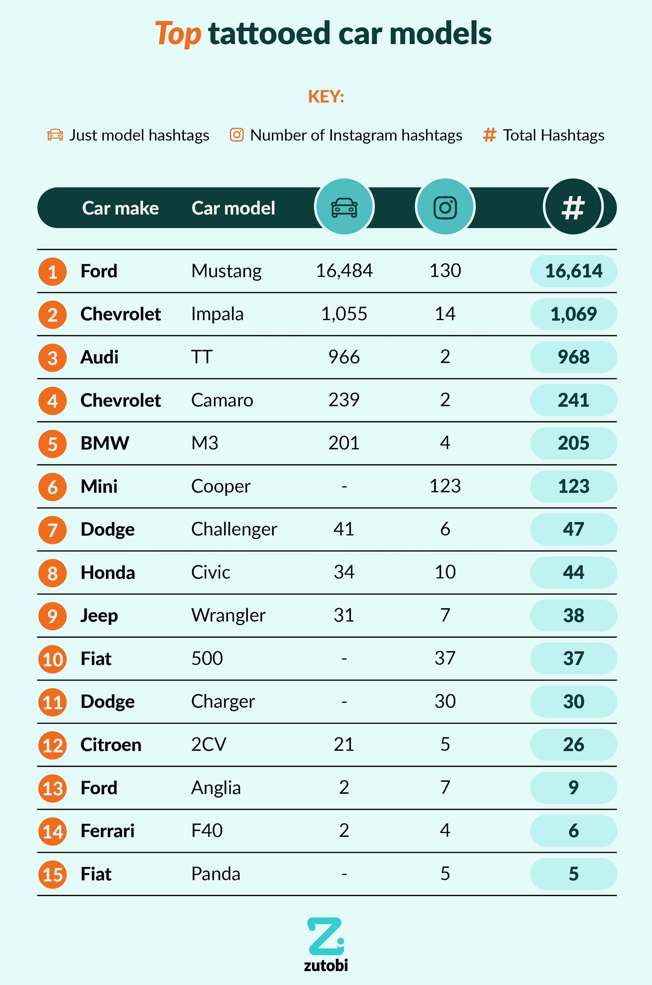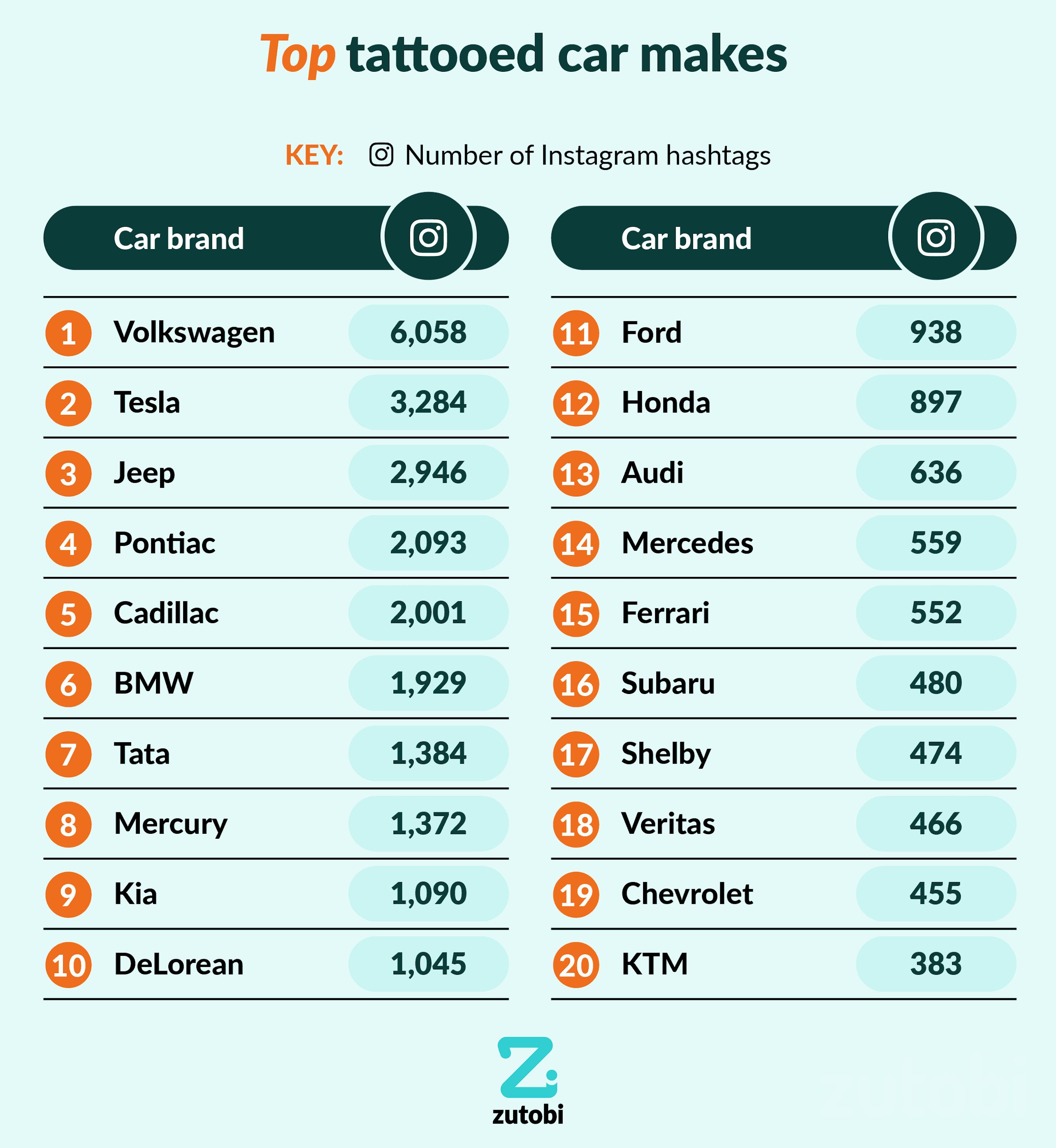 But which manufacturers and models are the most tattooed? By looking at social media data, experts have been able to determine the most tattooed cars.