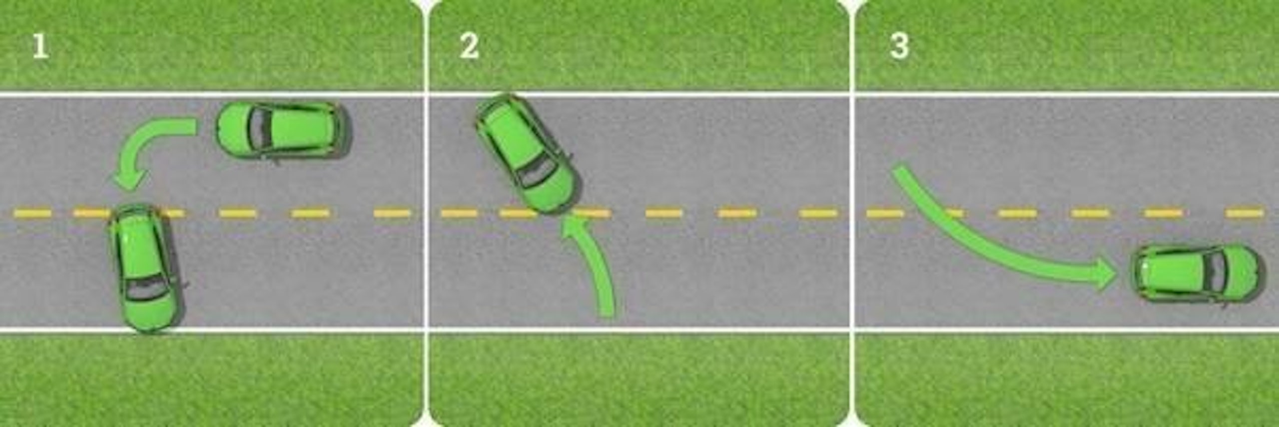 Here are the five steps for making a three-point turn: