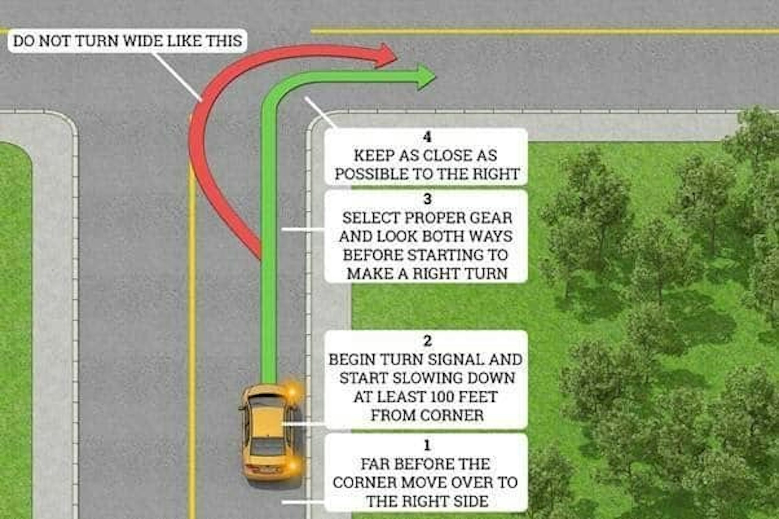 How to safely make a right turn in 4 simple steps: