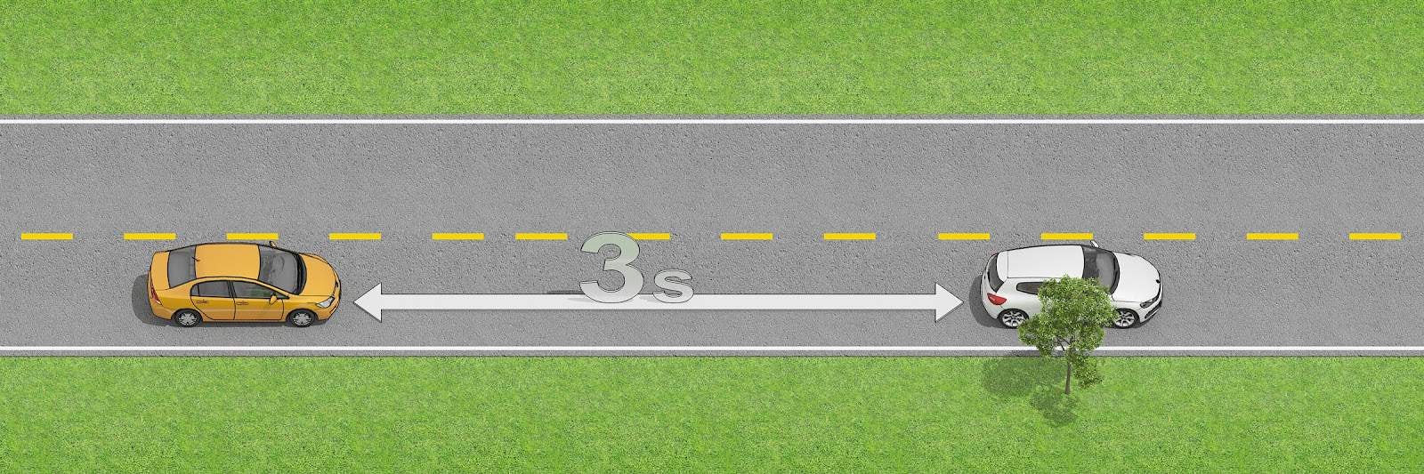 - Note when the vehicle in front of you passes an object (e.g. road sign, building etc.) and count the seconds until you pass the same object